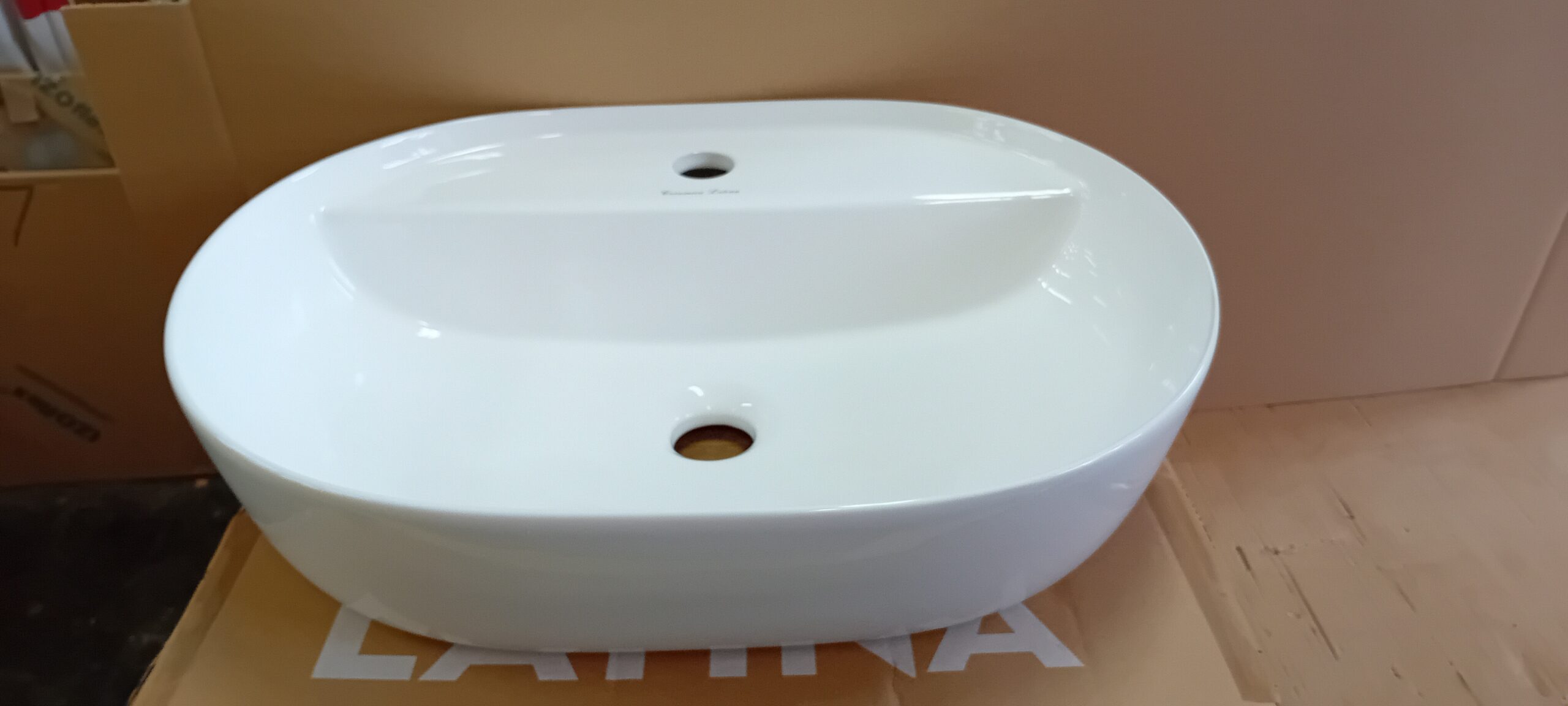 Oválne keramické umývadlo s otvorom pre batériu, bez prepadu.
