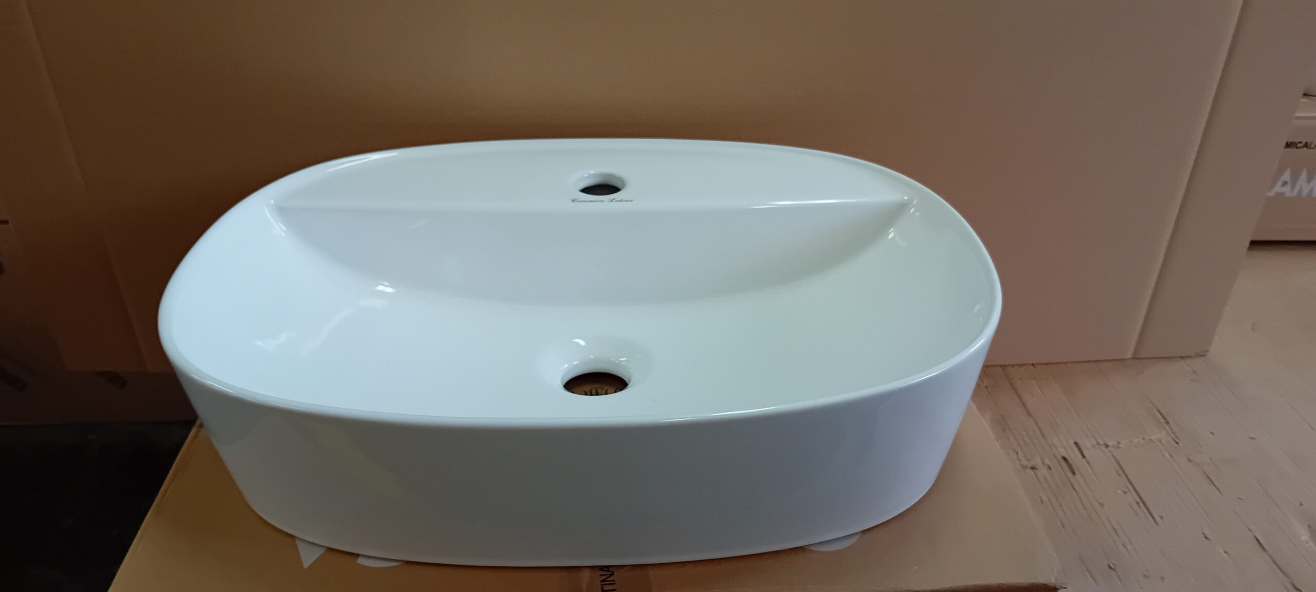 Oválne keramické umývadlo s otvorom pre batériu, bez prepadu.