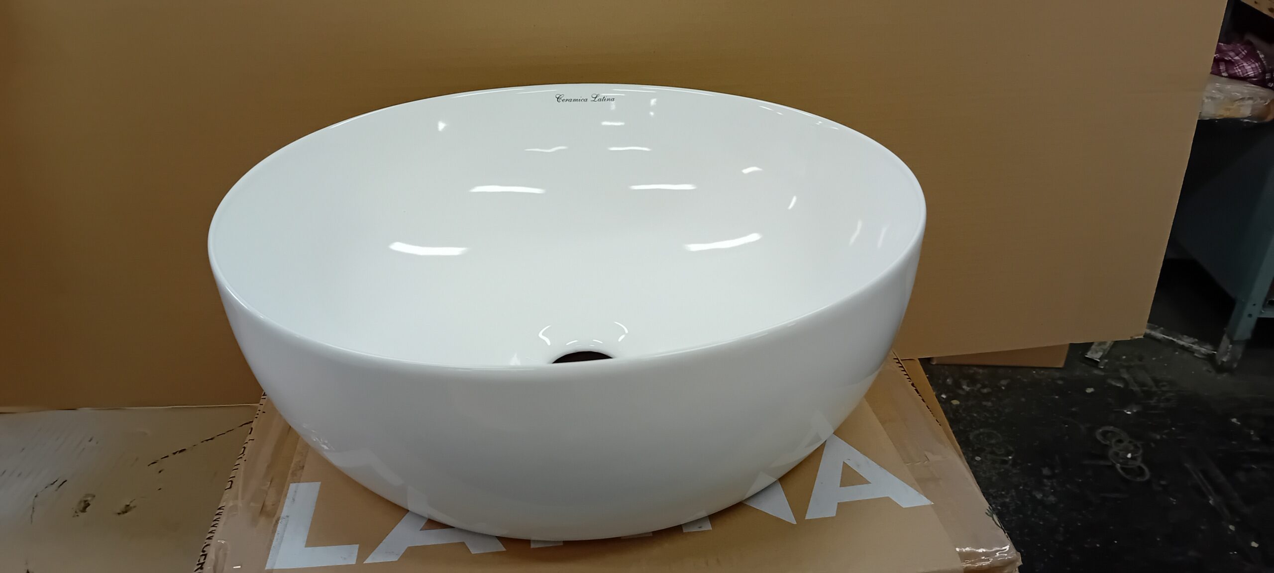 Kruhové keramické umývadlo bez otvoru pre batériu, bez prepadu.