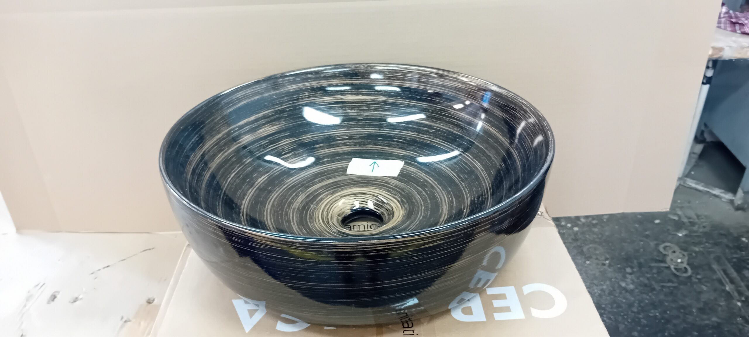 Kruhové keramické umývadlo bez otvoru pre batériu, bez prepadu.