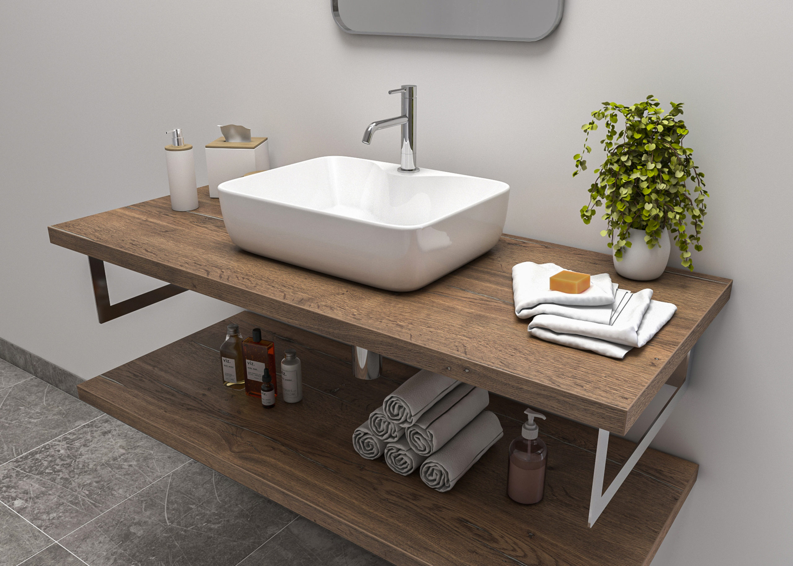 Výroba a predaj umývadlových políc na mieru. Ich základ tvorí drevotriesková doska, ktorá je impregnovaná melamínovou živicou. K dispozícii sú v rôznych povrchových úpravách, vrátane lesklej, matnej a nádhernými štruktúrami dreva.
