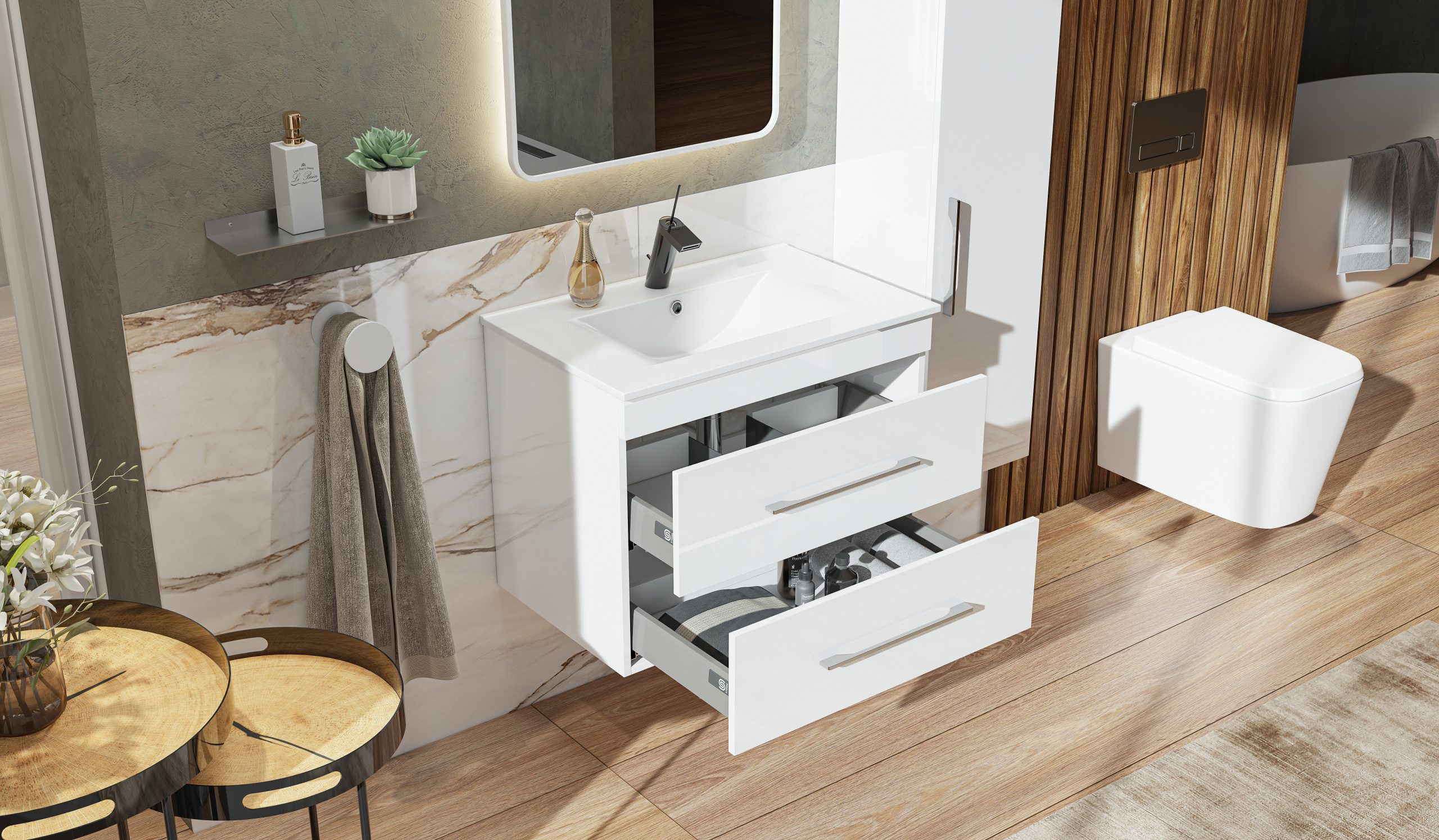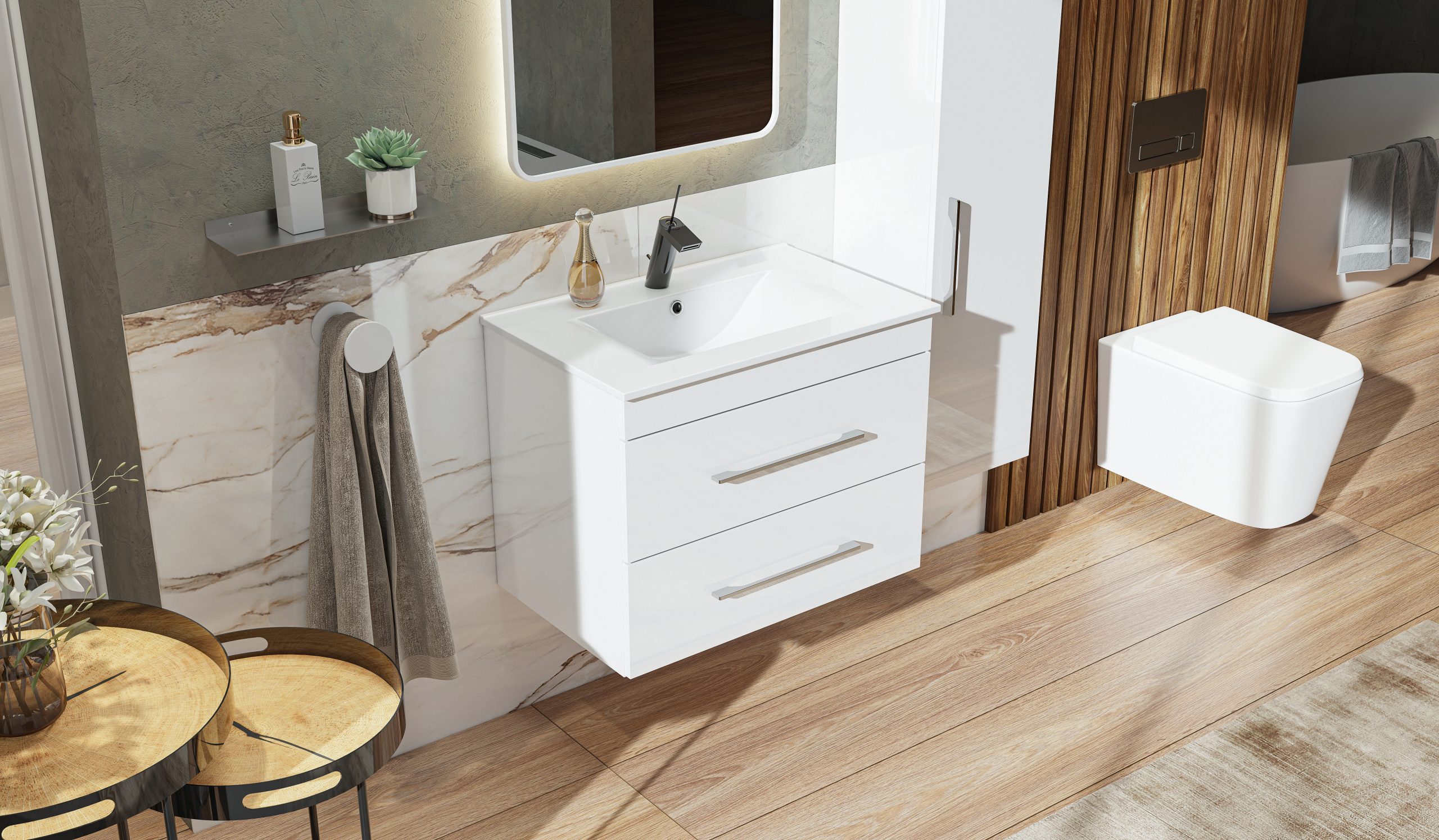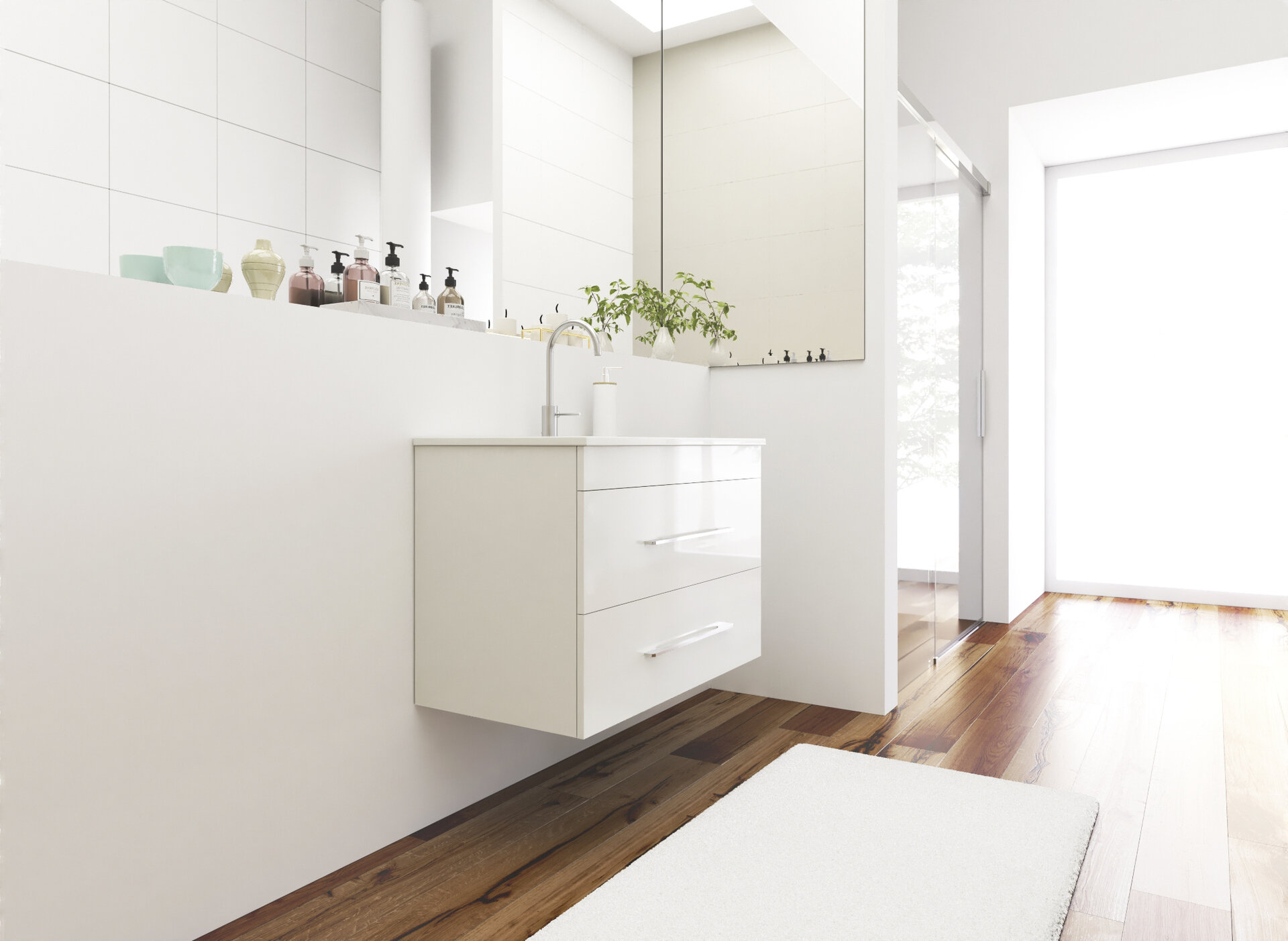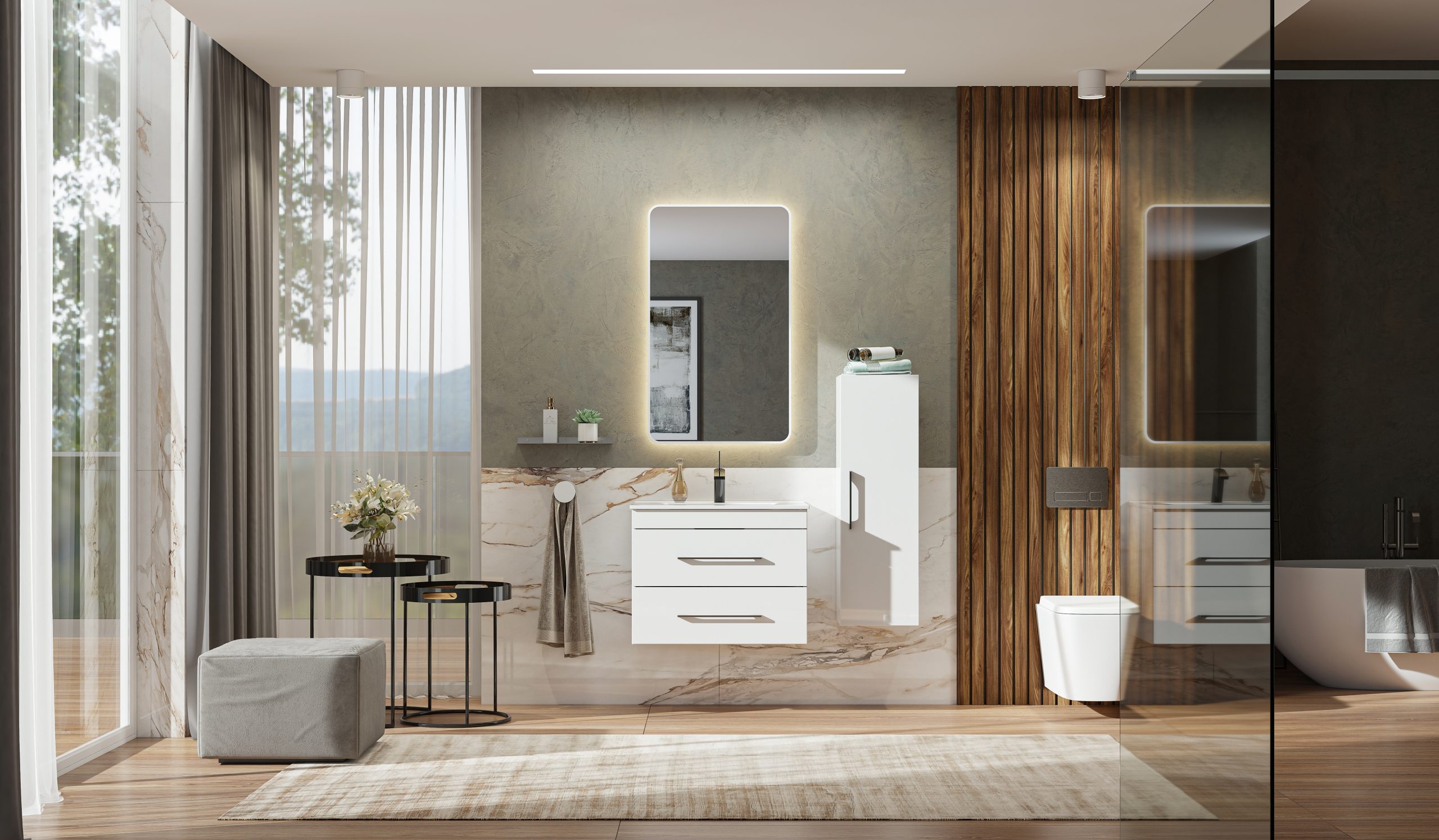 Závesná skrinka pod umývadlo s dvoma zásuvkami Dokonale zladené tvary kúpeľňových skriniek série ENERGY2 v kombinácii s chrómovými úchytmi vytvoria očarujúcu štýlovú kúpeľňu. Kvalitné prevedenie a materiály sú zárukou dlhej životnosti. Skrinka je dodávaná zmontovaná. Dodacia lehota je 4 – 5 týždňov.