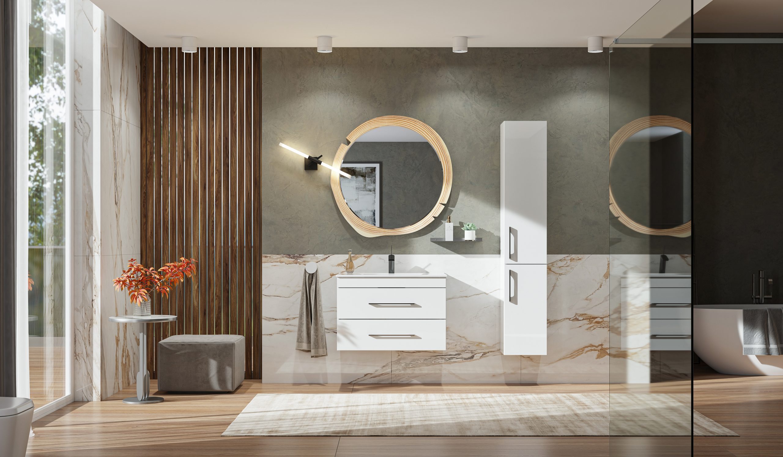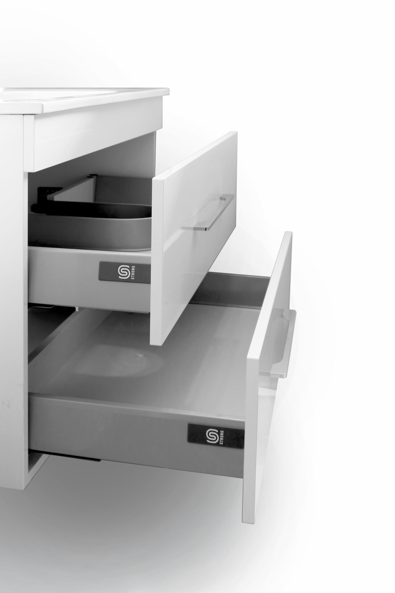 Závesná skrinka pod umývadlo s dvoma zásuvkami. Dokonale zladené tvary kúpeľňových skriniek série ENERGY2 v kombinácii s chrómovými úchytmi vytvoria očarujúcu štýlovú kúpeľňu. Kvalitné prevedenie a materiály sú zárukou dlhej životnosti. Skrinka je dodávaná zmontovaná. Dodacia lehota je 4 – 5 týždňov.
