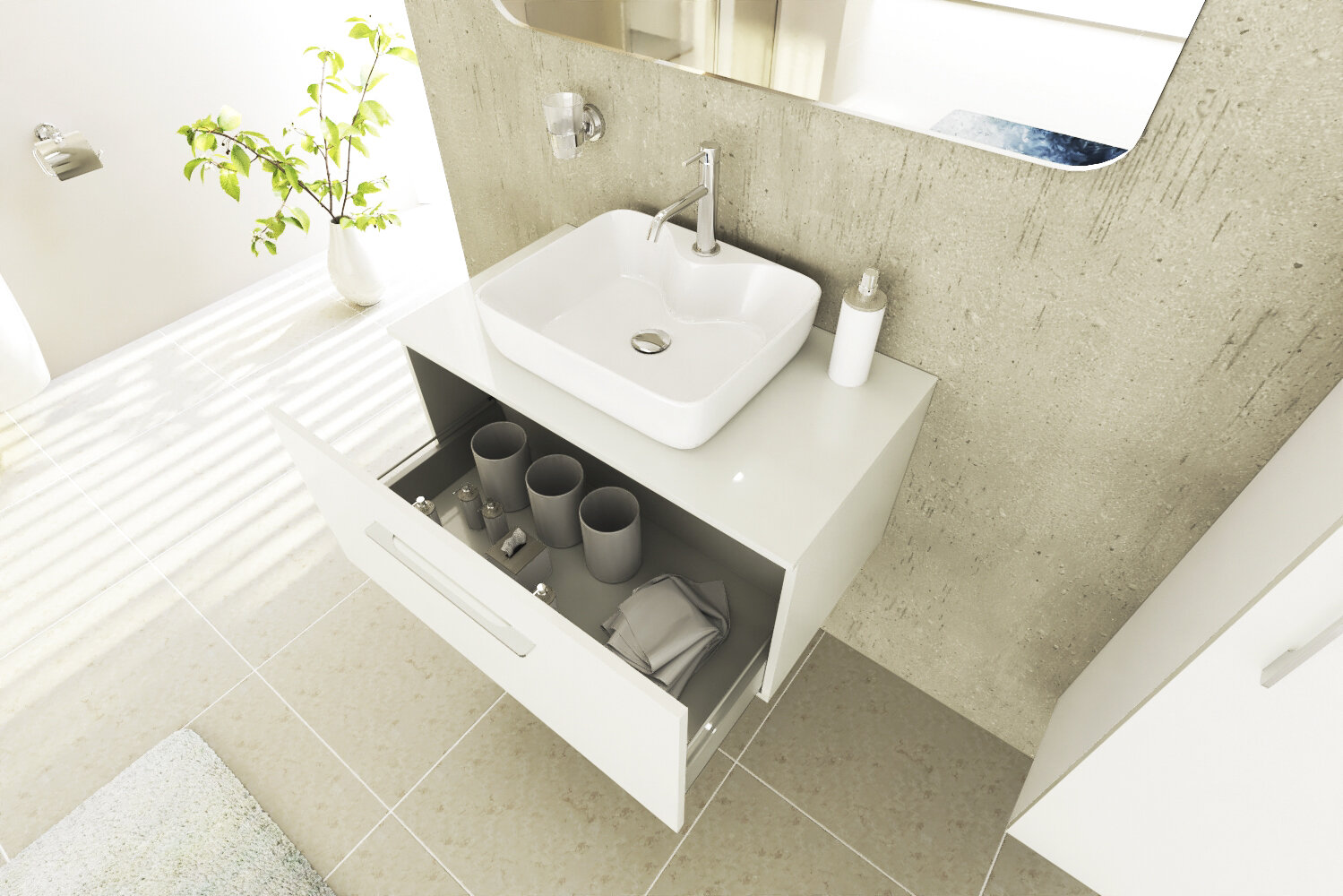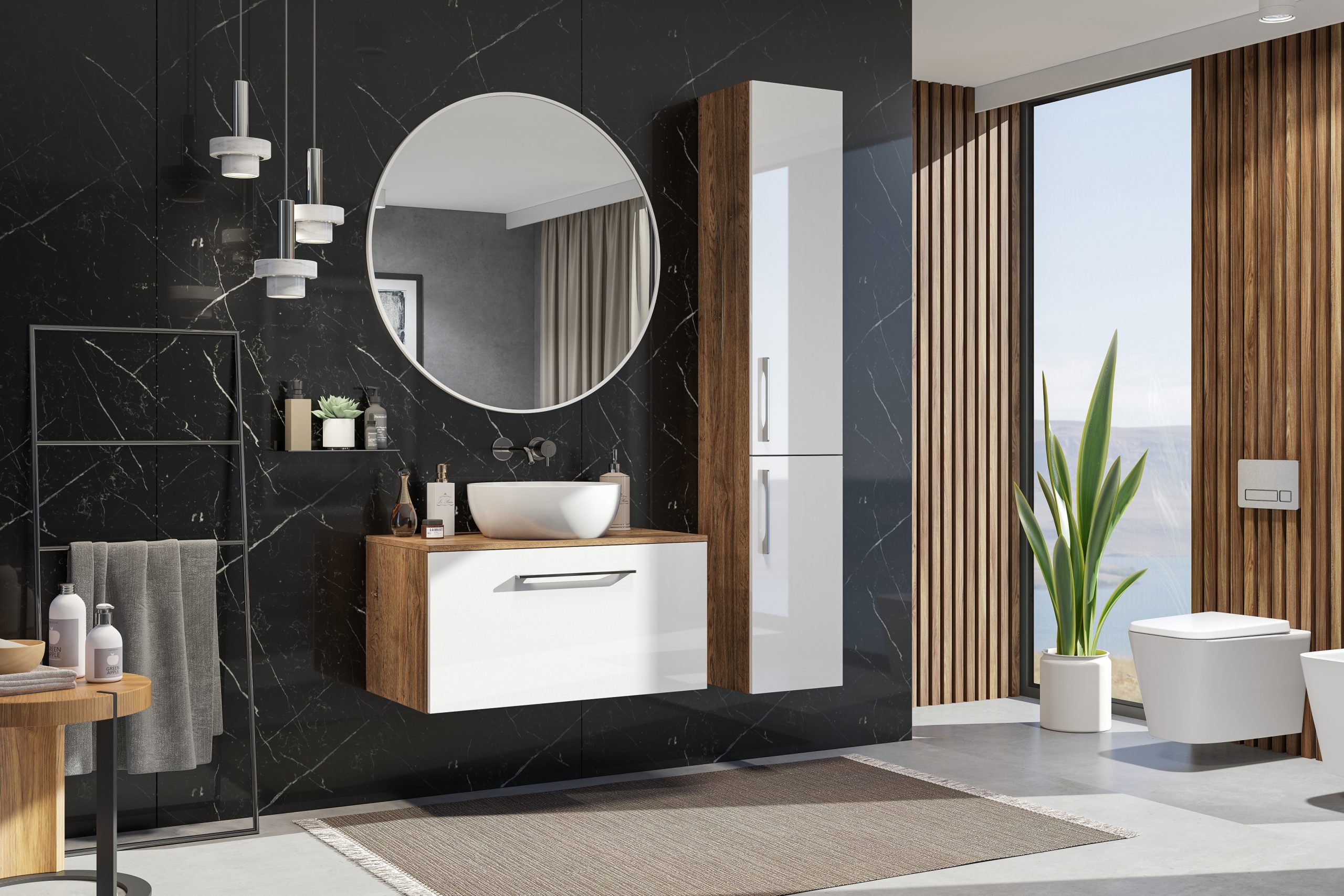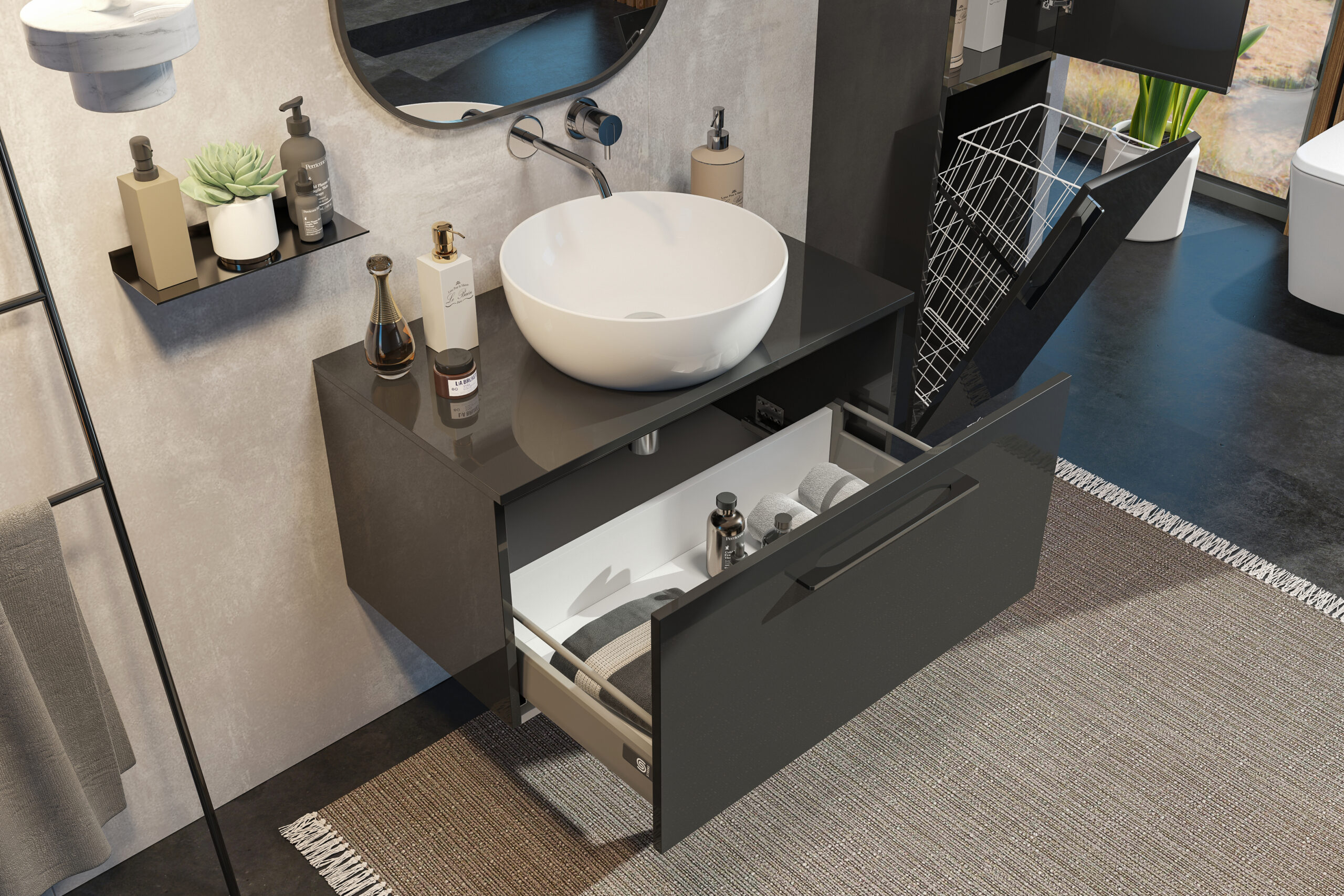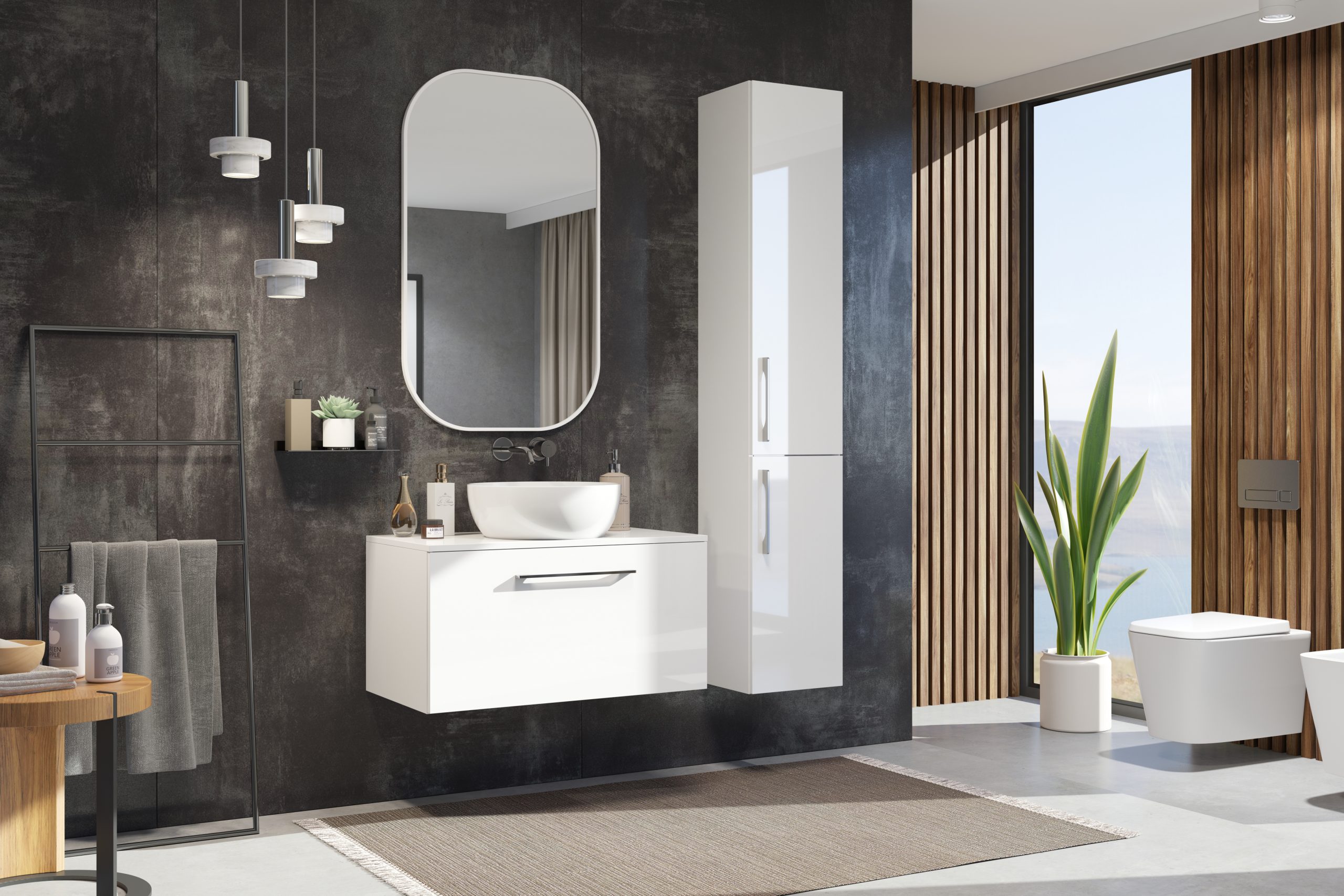 Závesná skrinka pod umývadlo s jednou zásuvkou Dokonale zladené tvary kúpeľňových skriniek série LOFT1 v kombinácii s chrómovými úchytmi vytvoria očarujúcu štýlovú kúpeľňu. Kvalitné prevedenie a materiály sú zárukou dlhej životnosti. Riešenie komponentov je premyslené tak, aby bolo praktické a zároveň moderné. Skrinka je dodávaná zmontovaná. Dodacia lehota je 4 – 5 týždňov.