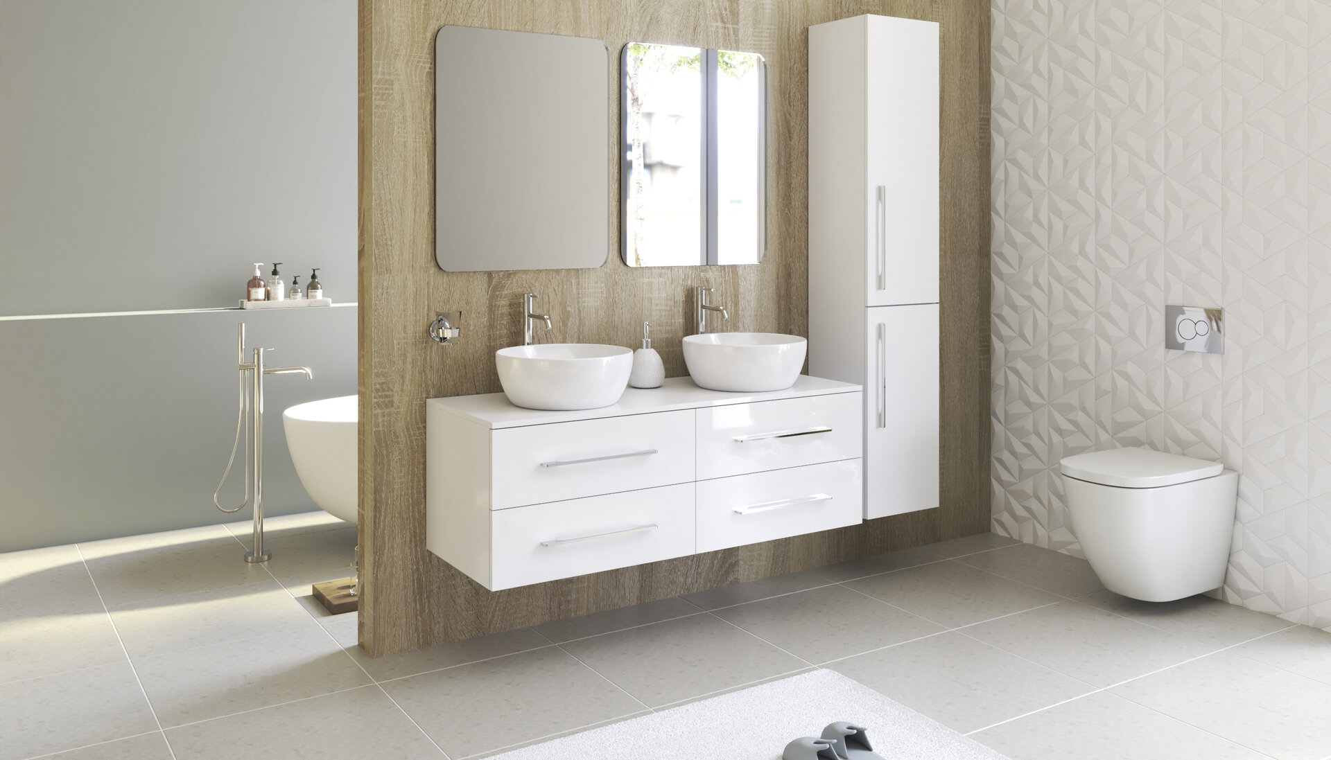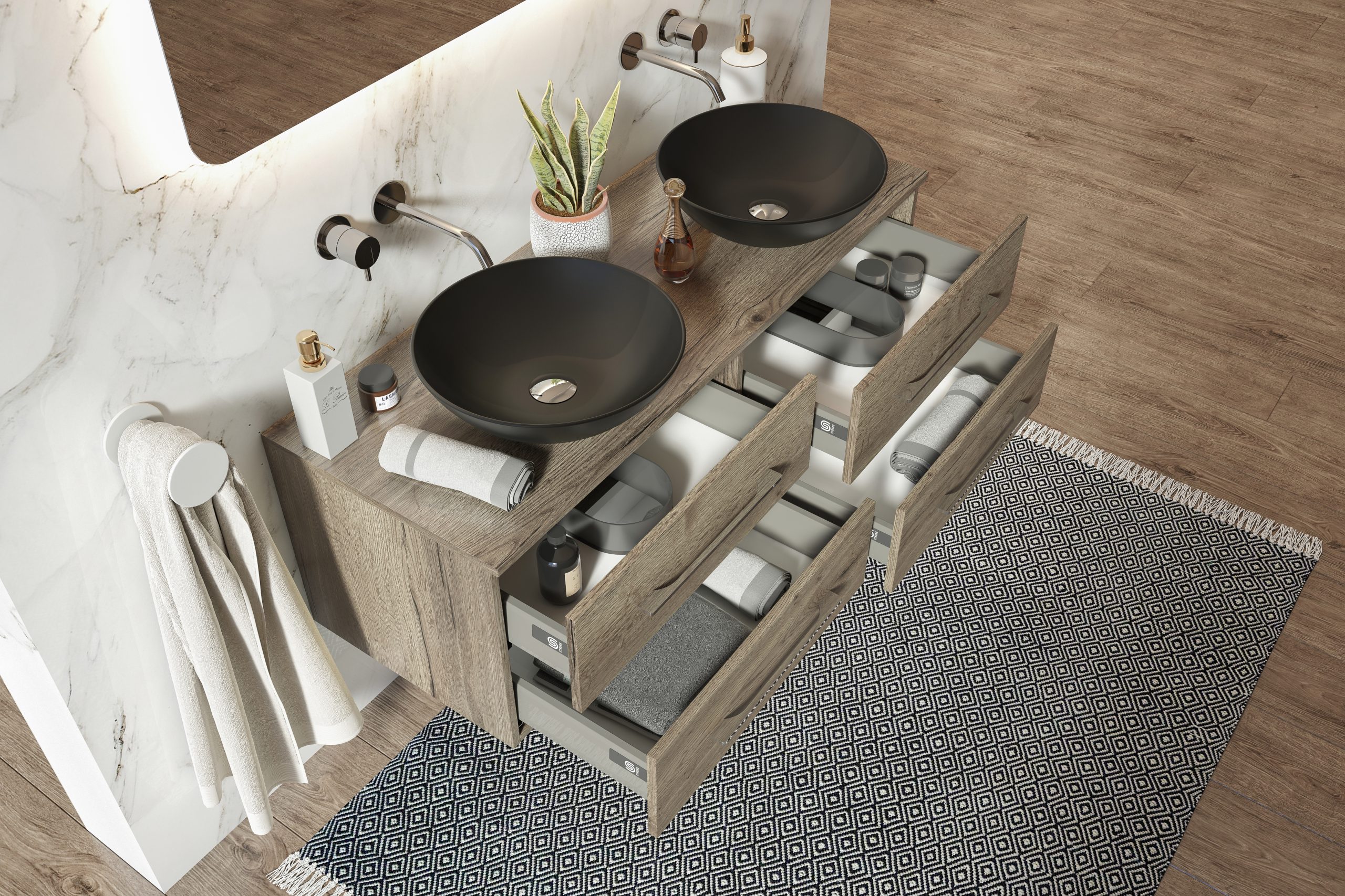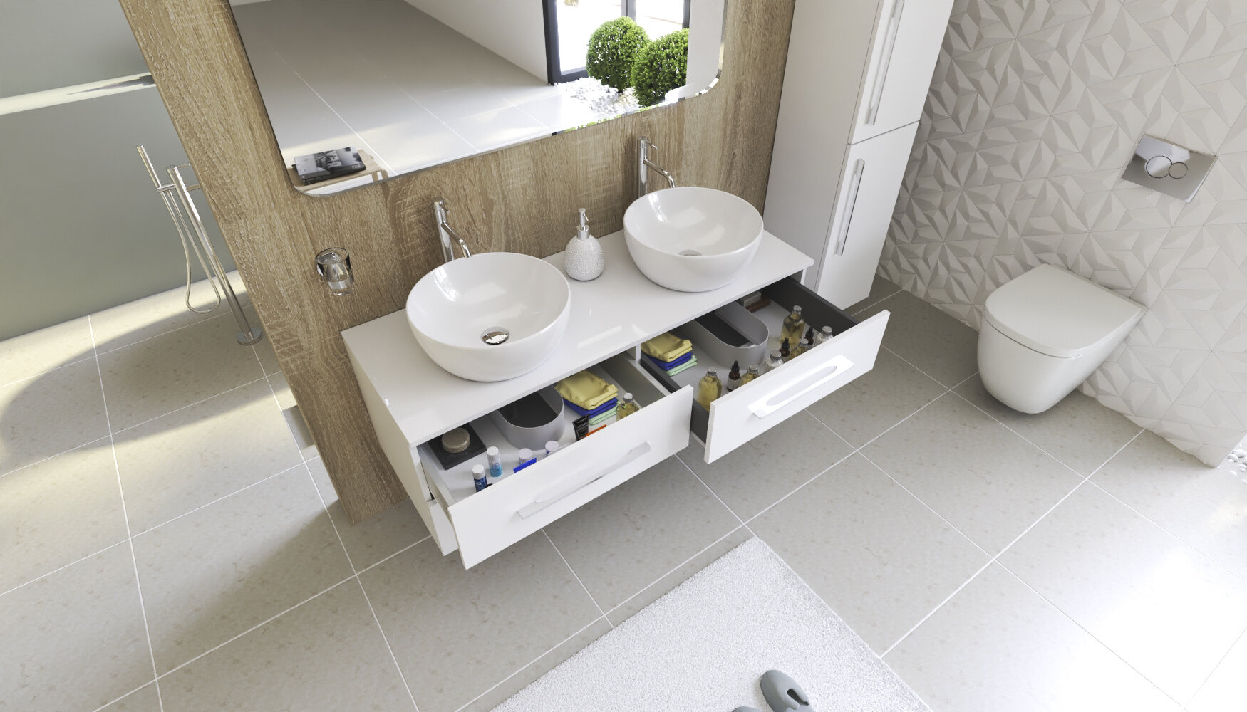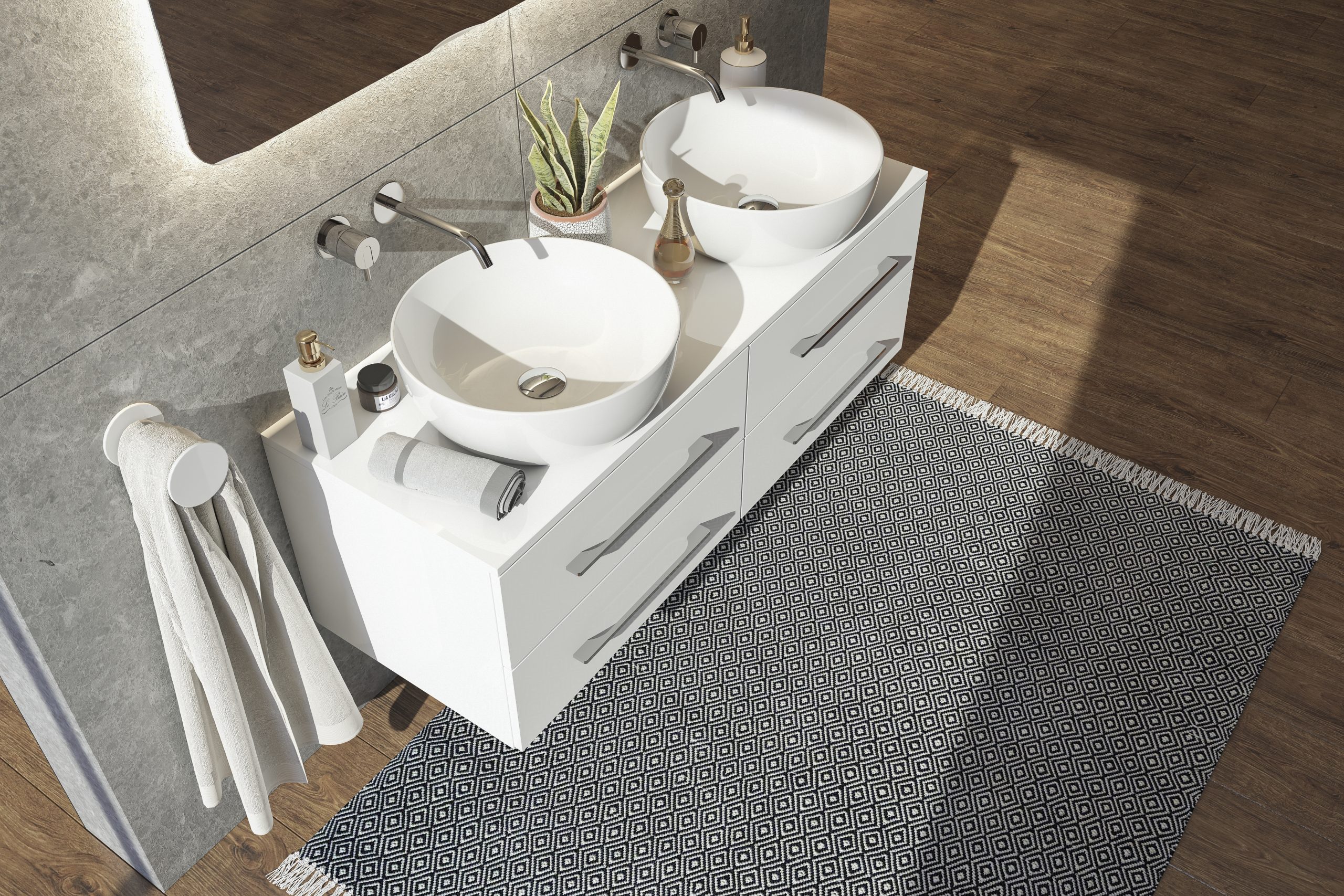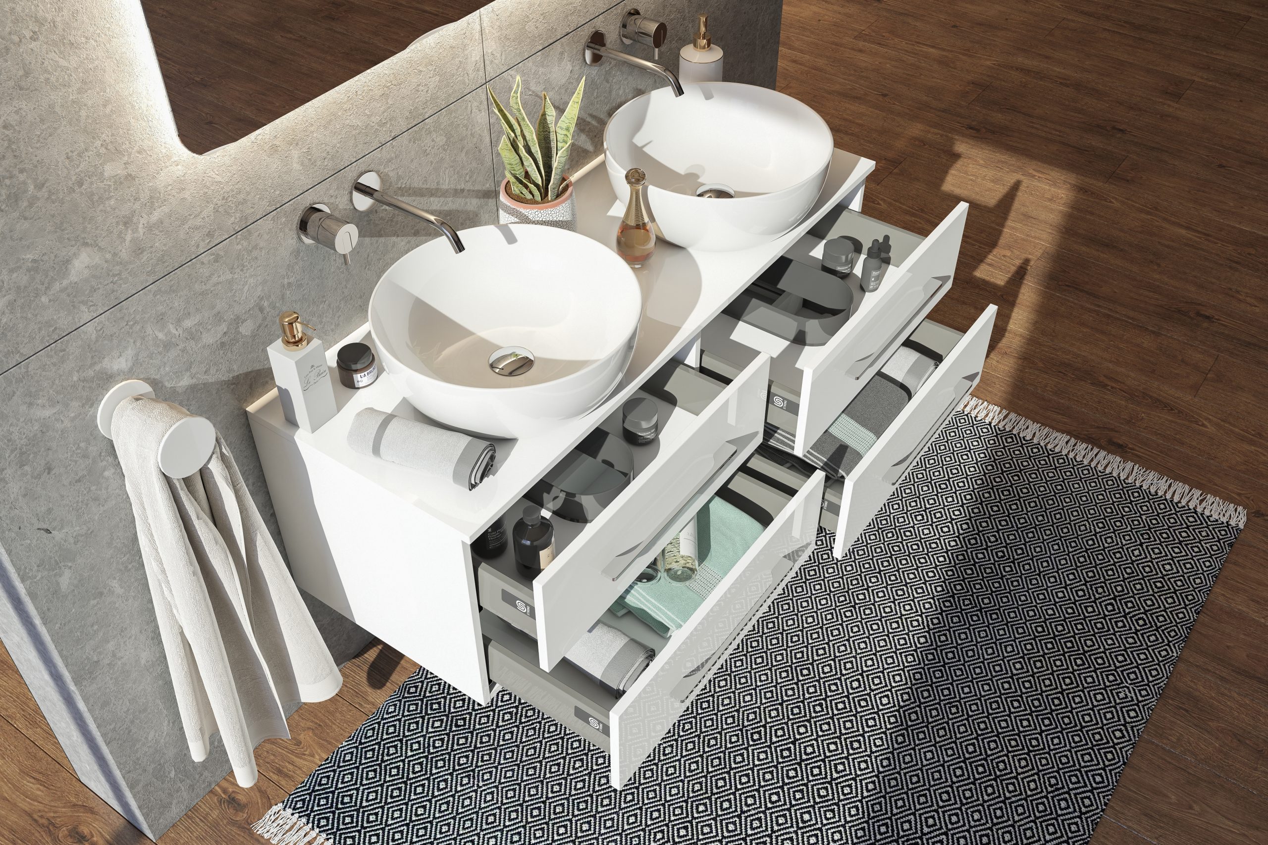 Závesná skrinka pod umývadlo so štyrmi zásuvkami Dokonale zladené tvary kúpeľňových skriniek série LOFT2 v kombinácii s chrómovými úchytmi vytvoria očarujúcu štýlovú kúpeľňu. Kvalitné prevedenie a materiály sú zárukou dlhej životnosti. Skrinka je dodávaná zmontovaná. Dodacia lehota je 4 – 5 týždňov.