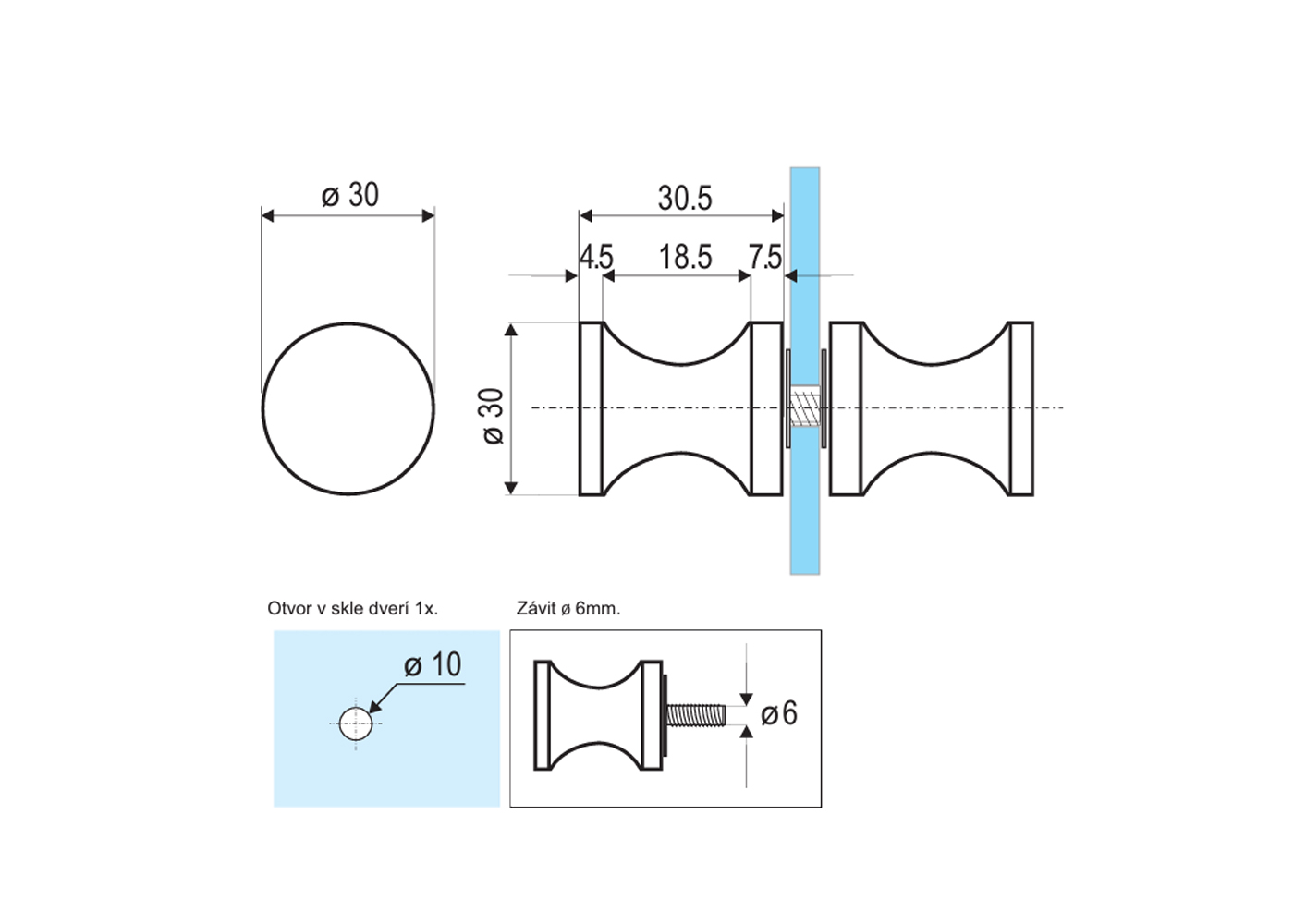KS – 605 oboustranný úchyt z oceli do skleněných dveří sprchových koutů. Povrchová úprava úchytu lesklý chrom.