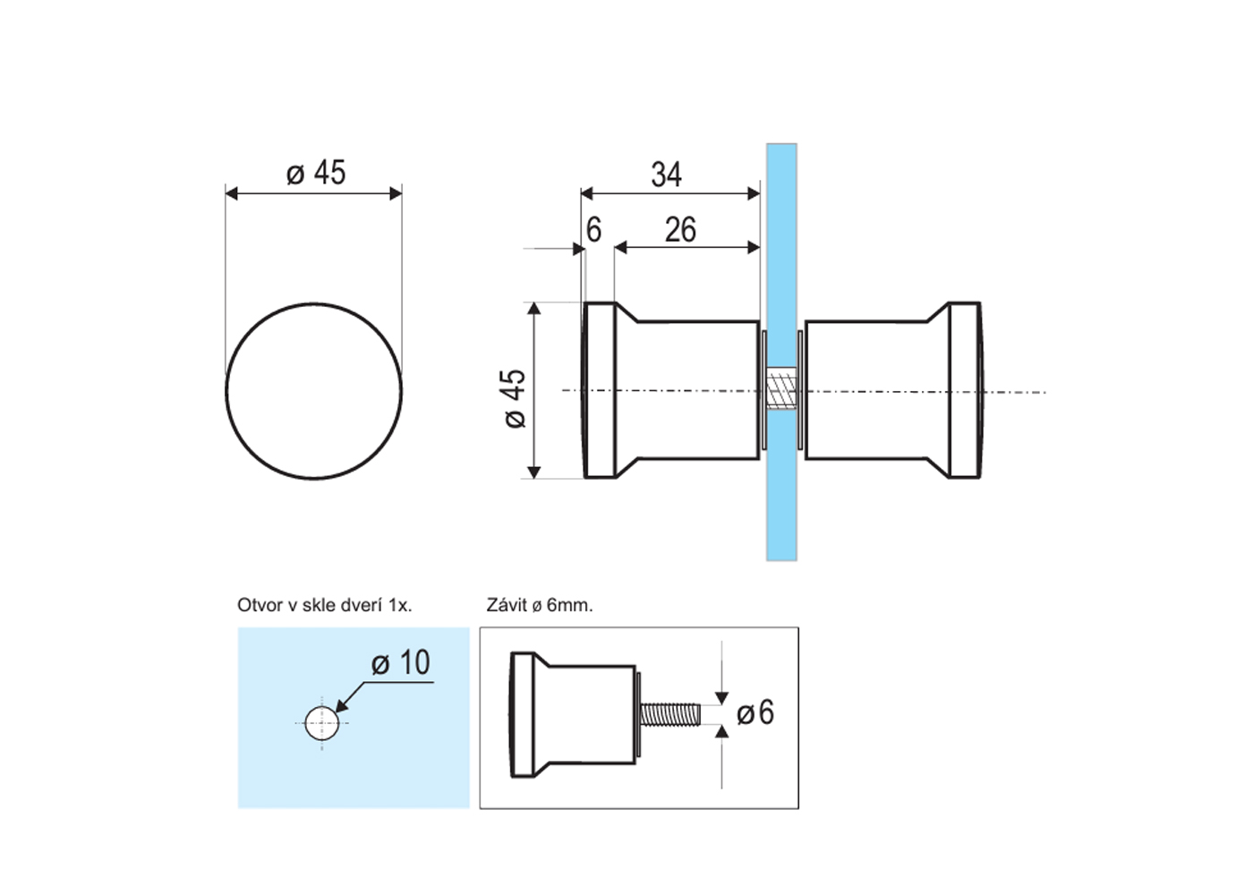 OS – 03 oboustranný úchyt z plastu do skleněných dveří sprchových koutů. Povrchová úprava úchytu lesklý chrom.