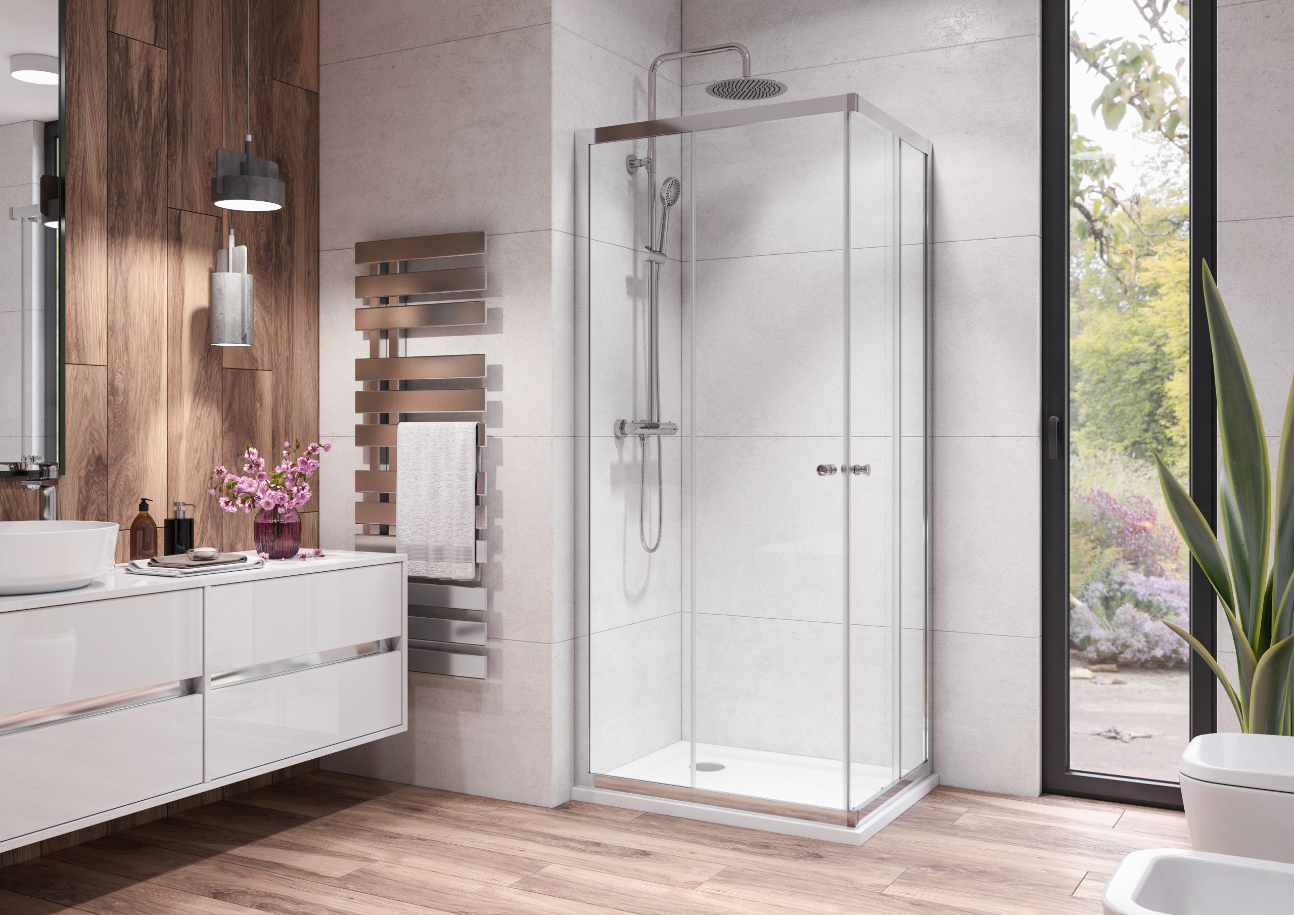 Sprchové kúty série HOLIDAY R4 obdĺžnikové s dvomi zásuvnými dverami. Ekonomická voľba s vysokým ohľadom na kvalitu. Magnetické uzatváranie. Kvalitný systém posúvania dverí pomocou dvojitých koliesok. Vyrovnávací bočný profil s 2 cm roztiahnutím. Kalené sklo hrubé 6 mm v prevedení grapé alebo číre s celkovou výškou sprchových dverí 195 cm. Vyklápanie spodnej časti dverí pre lepšiu údržbu.