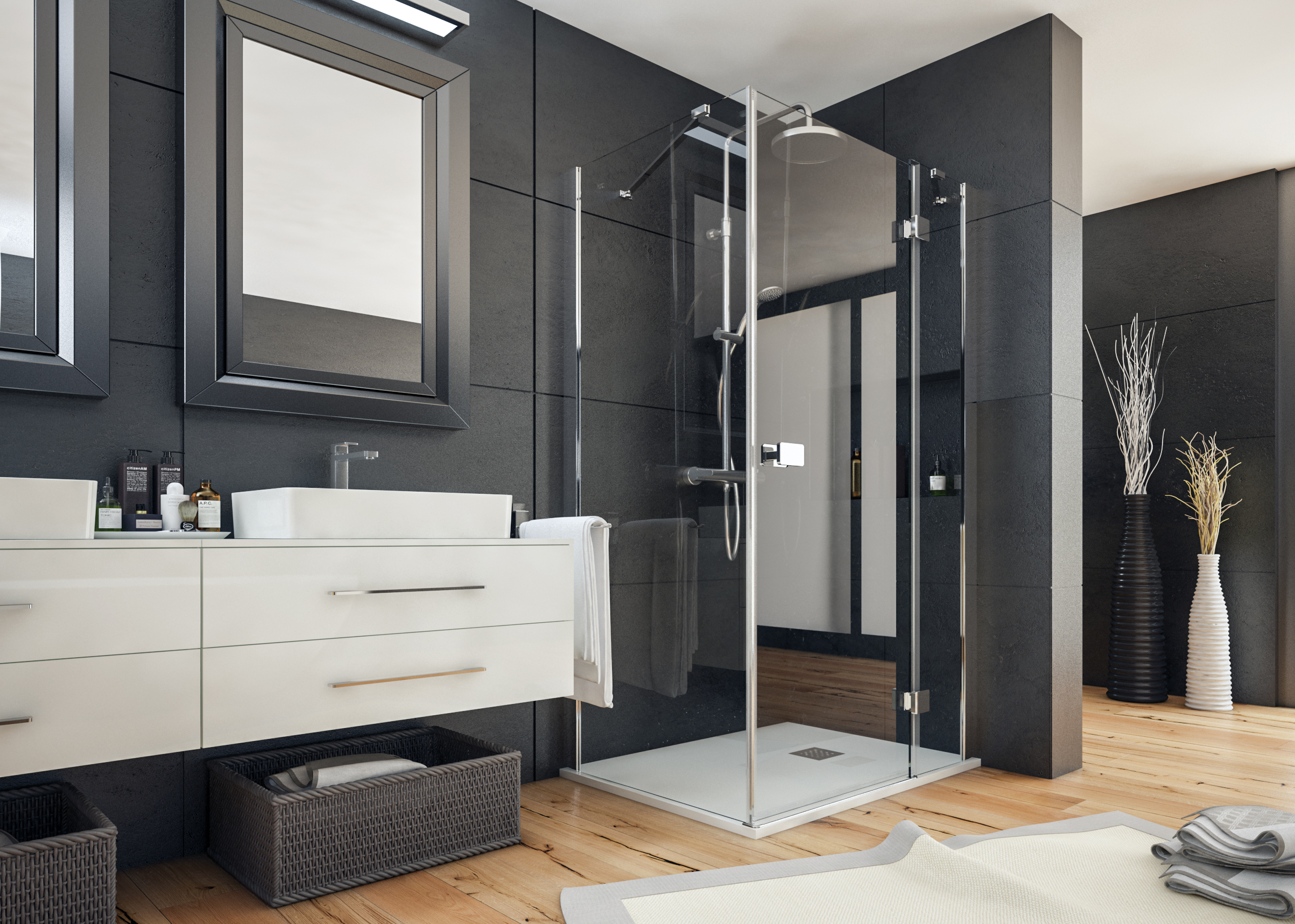 Séria posuvných sprchových kútov, dverí a zásten WELLNESS BLACK A4 sa vyznačuje najmä svojou kombinačnou variabilitou rôznych rozmerových riešení sprchovacieho priestoru. Novinkou, ktorú WELLNESS BLACK prináša je veľmi obľúbený walk-in systém, avšak s inovatívnou možnosťou posuvnej časti. Hrúbka skla 6 mm vo výške 200 cm definuje túto modelovú sériu aj z hľadiska jej priaznivej cenovej dostupnosti. Brzdiaci systém SOFT-Close pri otváraní a zatváraní dverí je neopomenuteľnou praktickou výhodou. Sklenené plochy sú ošetrené impregnačnou vrstvou antiplakovej úpravy Tekno.cal zjednodušujúcu ich pravidelnú údržbu.