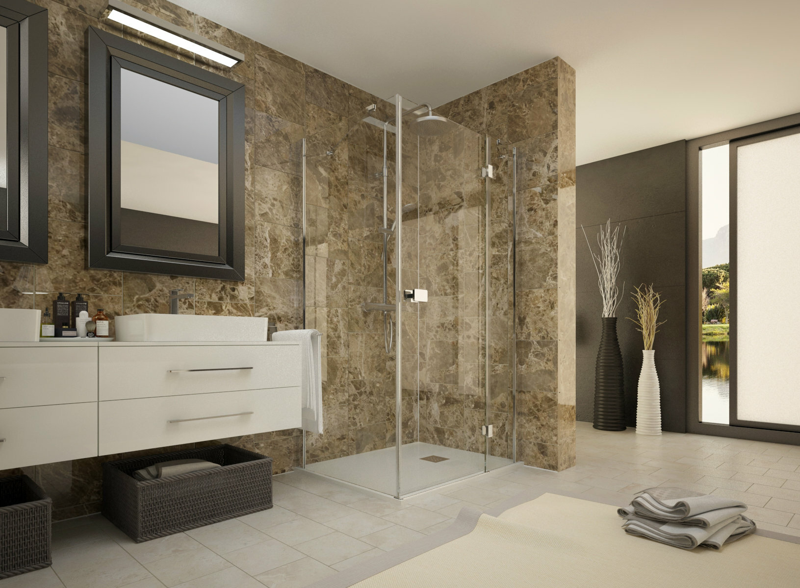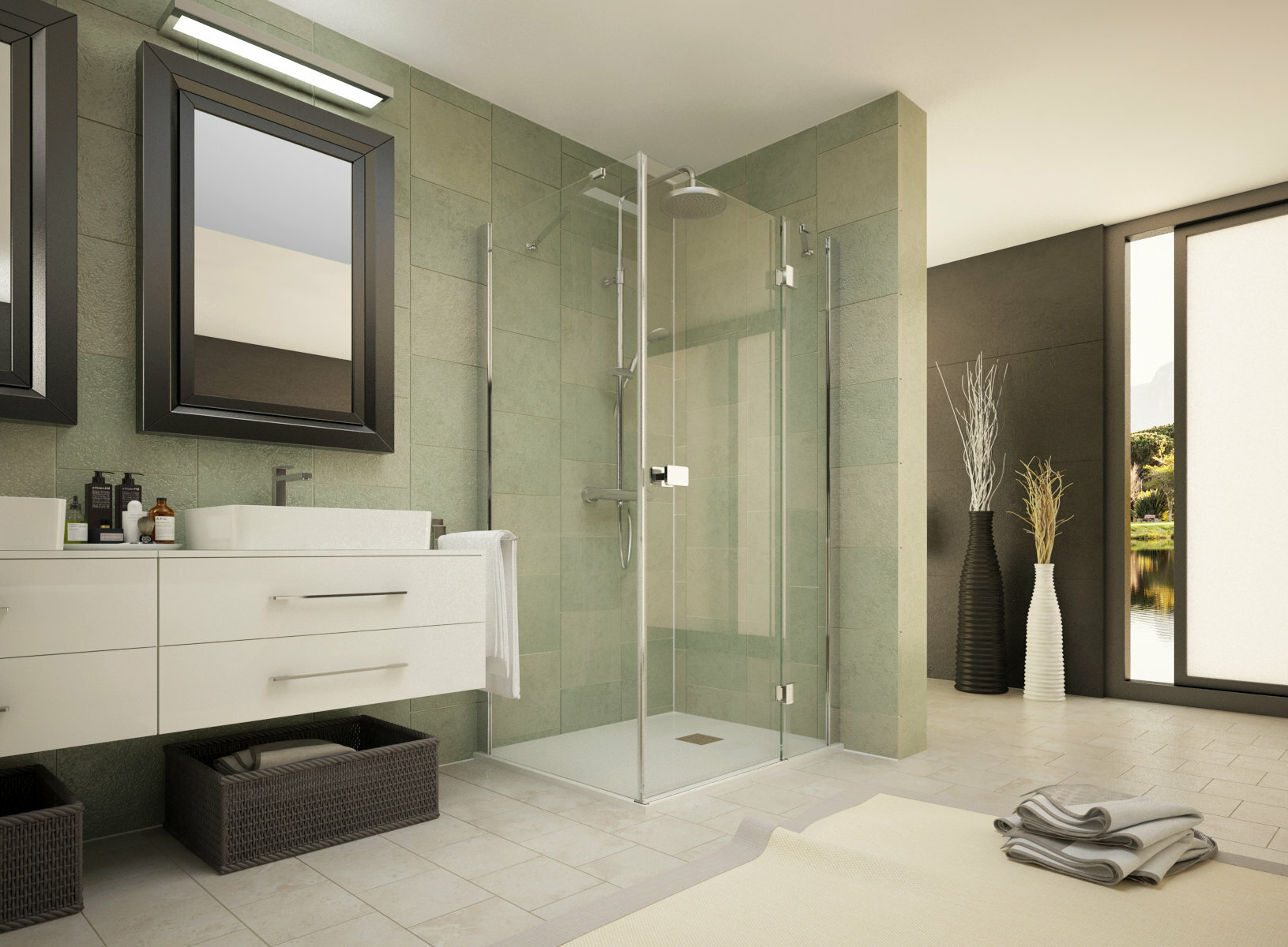 Sprchové kúty série SMART R13 s jednými otváracími dverami na pánty. Jedinečný dizajn navrhnutý pre náročných zákazníkov spĺňajúci kritériá elegancie a dizajnu s maximálnym dôrazom na funkčnosť a a praktickosť. Číre prevedenie sklenených plôch v hrúbke 8 mm a výške 195 cm. Chrómová podlahová lišta a magnetické uzatváranie dverí sú samozrejmou súčasťou konštrukčného riešenia. Vyrovnávací profil s 2 cm roztiahnutím je súčasťou každého modelu.