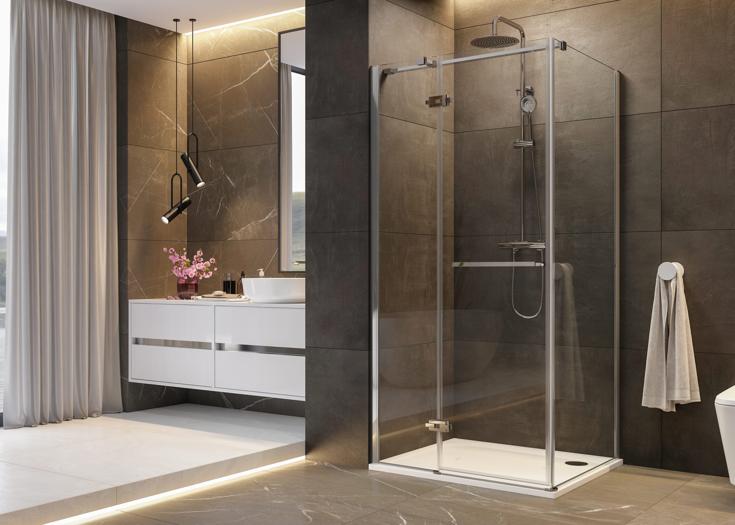 Sprchové kúty série VIP 2000 R13 s jednými otváracími dverami na pánty. Jedinečné a originálne detaily vizuálnych prvkov ako sú pánty, konzoly a madlá. Univerzálny model s čistými líniami plôch kaleného skla v hrúbke 8 mm a výške 200 cm. Spodná podlahová lišta, magnetické uzatváranie dverí a bočné vyrovnávacie profily s roztiahnutím 2 cm sú samozrejmosťou.