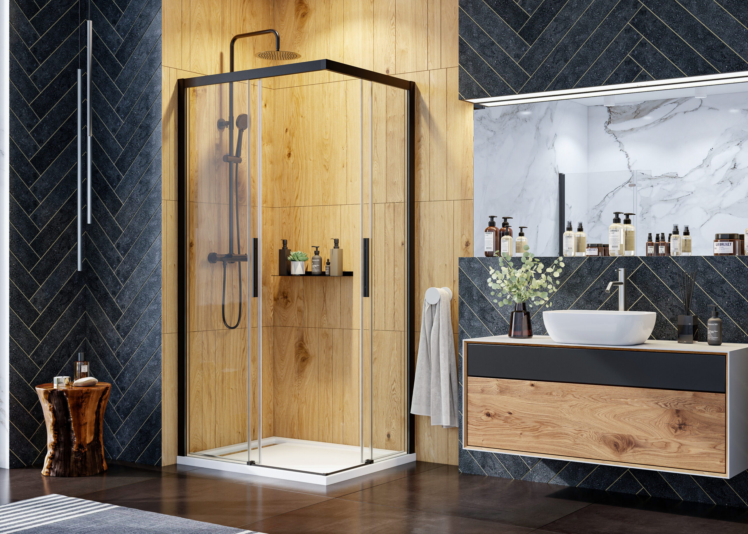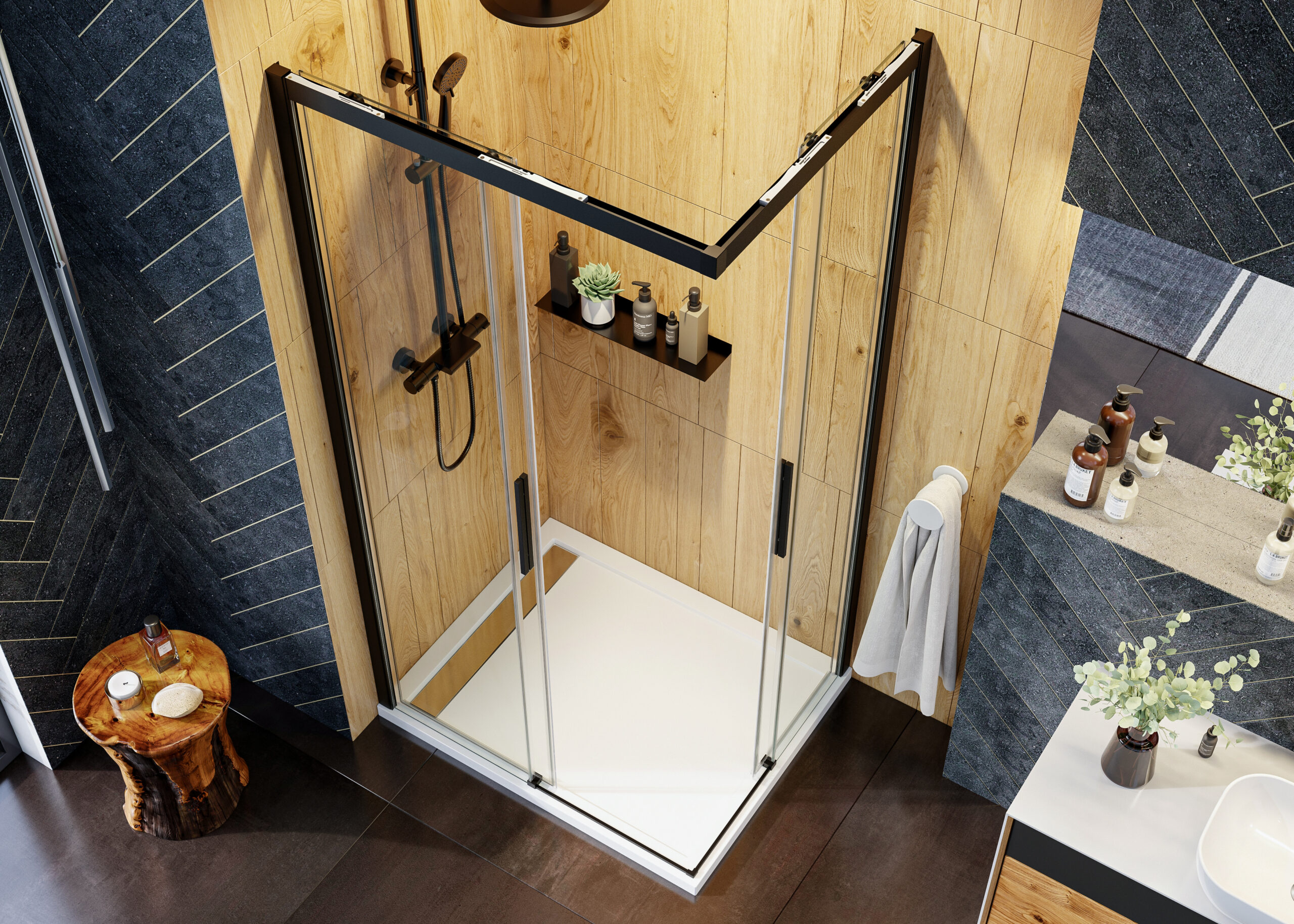 Séria posuvných sprchových kútov, dverí a zásten WELLNESS BLACK A4 sa vyznačuje najmä svojou kombinačnou variabilitou rôznych rozmerových riešení sprchovacieho priestoru. Novinkou, ktorú WELLNESS BLACK prináša je veľmi obľúbený walk-in systém, avšak s inovatívnou možnosťou posuvnej časti. Hrúbka skla 6 mm vo výške 200 cm definuje túto modelovú sériu aj z hľadiska jej priaznivej cenovej dostupnosti. Brzdiaci systém SOFT-Close pri otváraní a zatváraní dverí je neopomenuteľnou praktickou výhodou. Sklenené plochy sú ošetrené impregnačnou vrstvou antiplakovej úpravy Tekno.cal zjednodušujúcu ich pravidelnú údržbu.