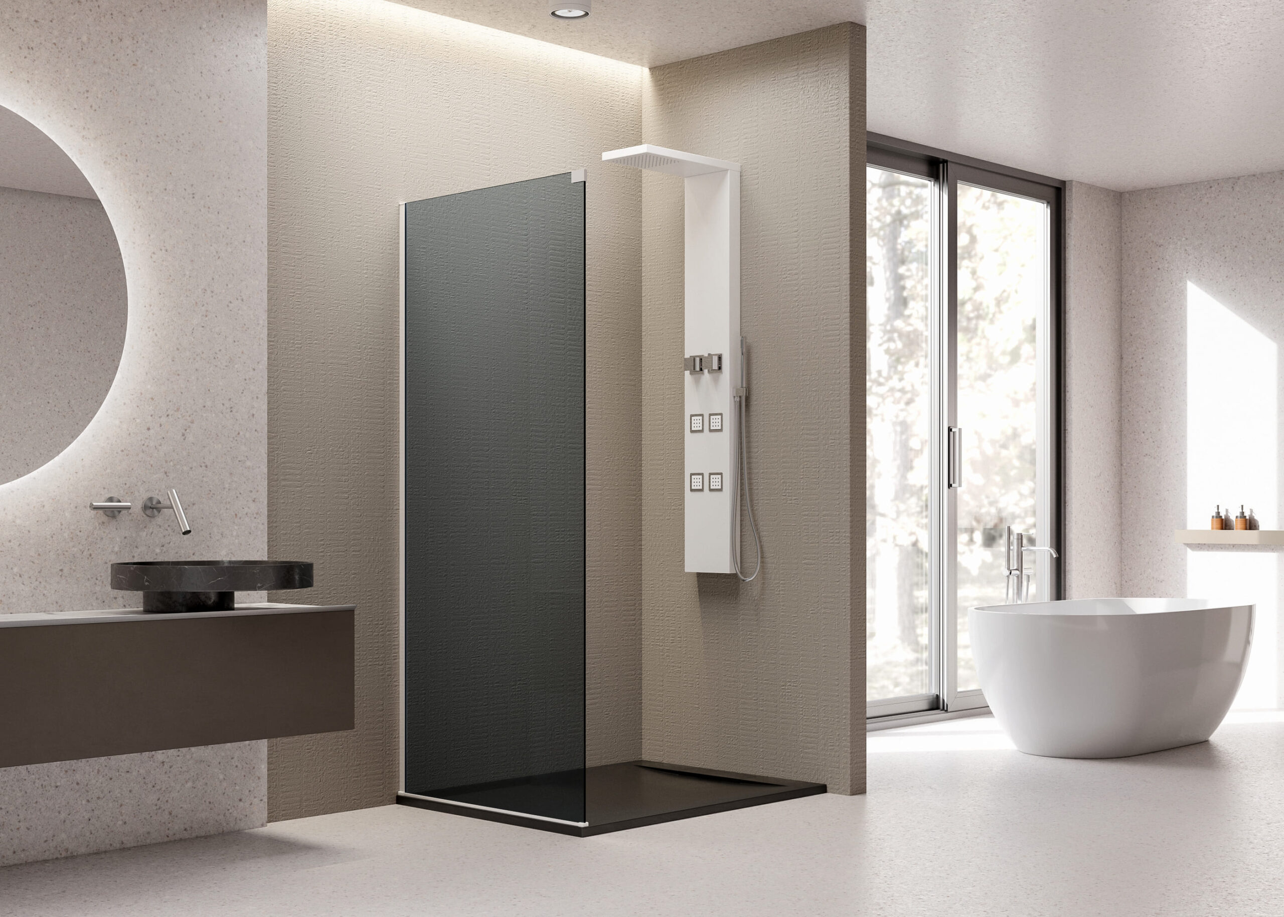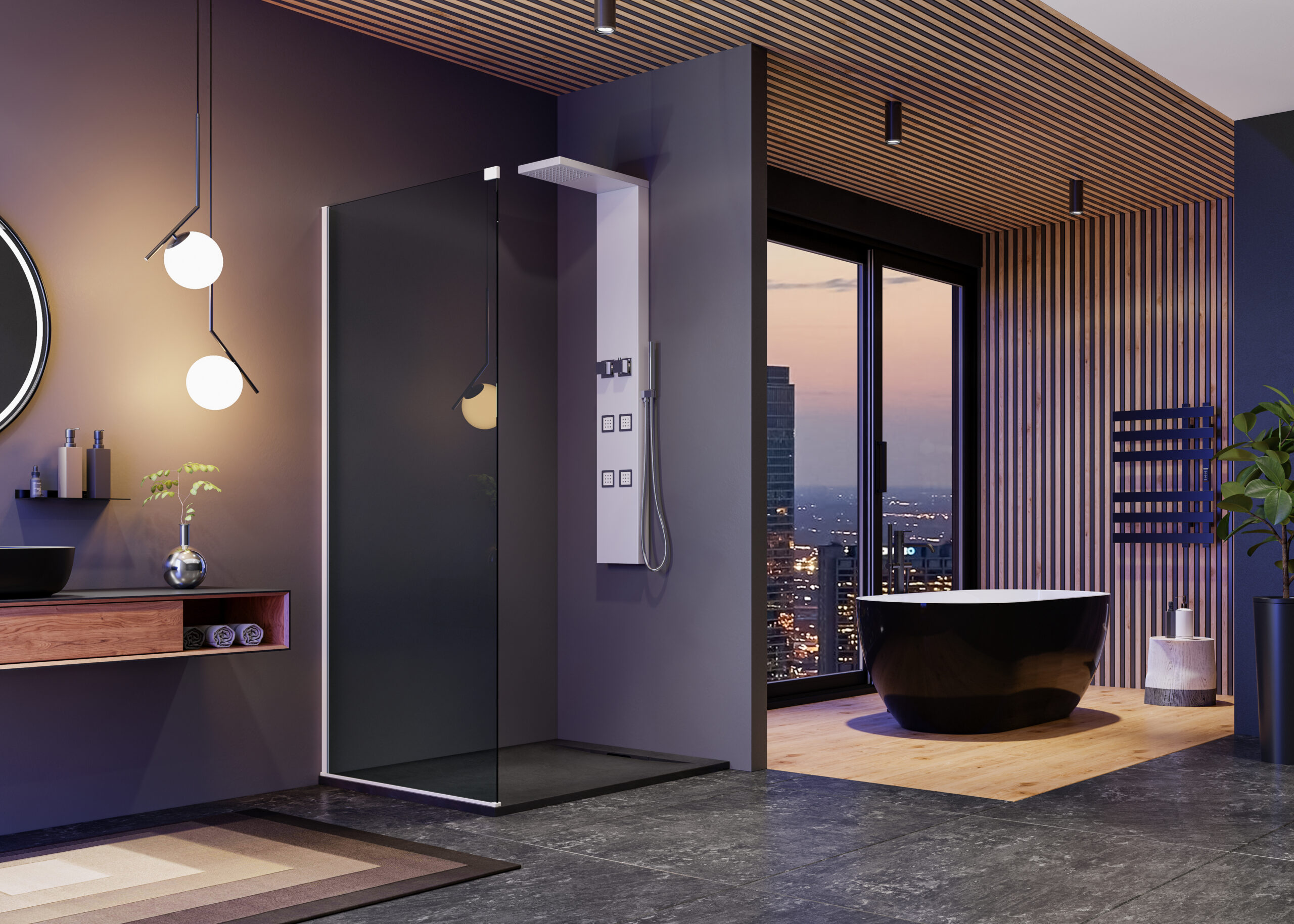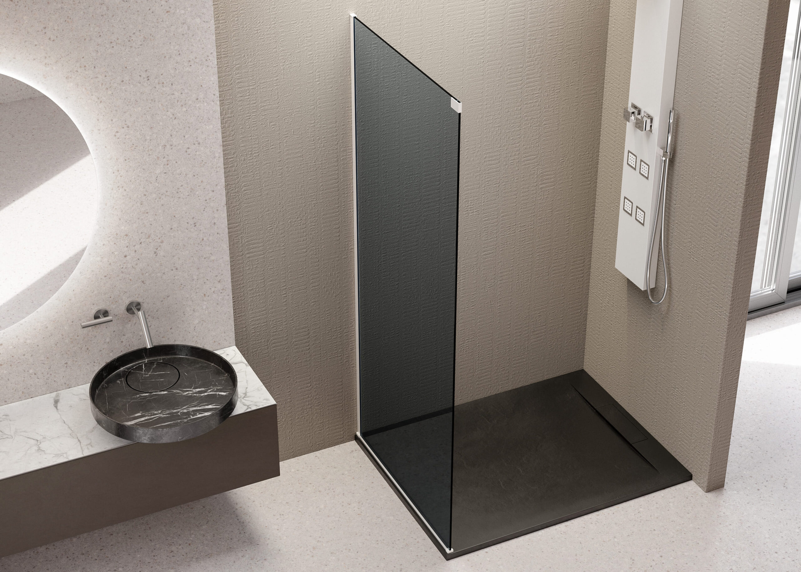 Séria posuvných sprchových kútov, dverí a zásten WELLNESS BLACK A4 sa vyznačuje najmä svojou kombinačnou variabilitou rôznych rozmerových riešení sprchovacieho priestoru. Novinkou, ktorú WELLNESS BLACK prináša je veľmi obľúbený walk-in systém, avšak s inovatívnou možnosťou posuvnej časti. Hrúbka skla 6 mm vo výške 200 cm definuje túto modelovú sériu aj z hľadiska jej priaznivej cenovej dostupnosti. Brzdiaci systém SOFT-Close pri otváraní a zatváraní dverí je neopomenuteľnou praktickou výhodou. Sklenené plochy sú ošetrené impregnačnou vrstvou antiplakovej úpravy Tekno.cal zjednodušujúcu ich pravidelnú údržbu.