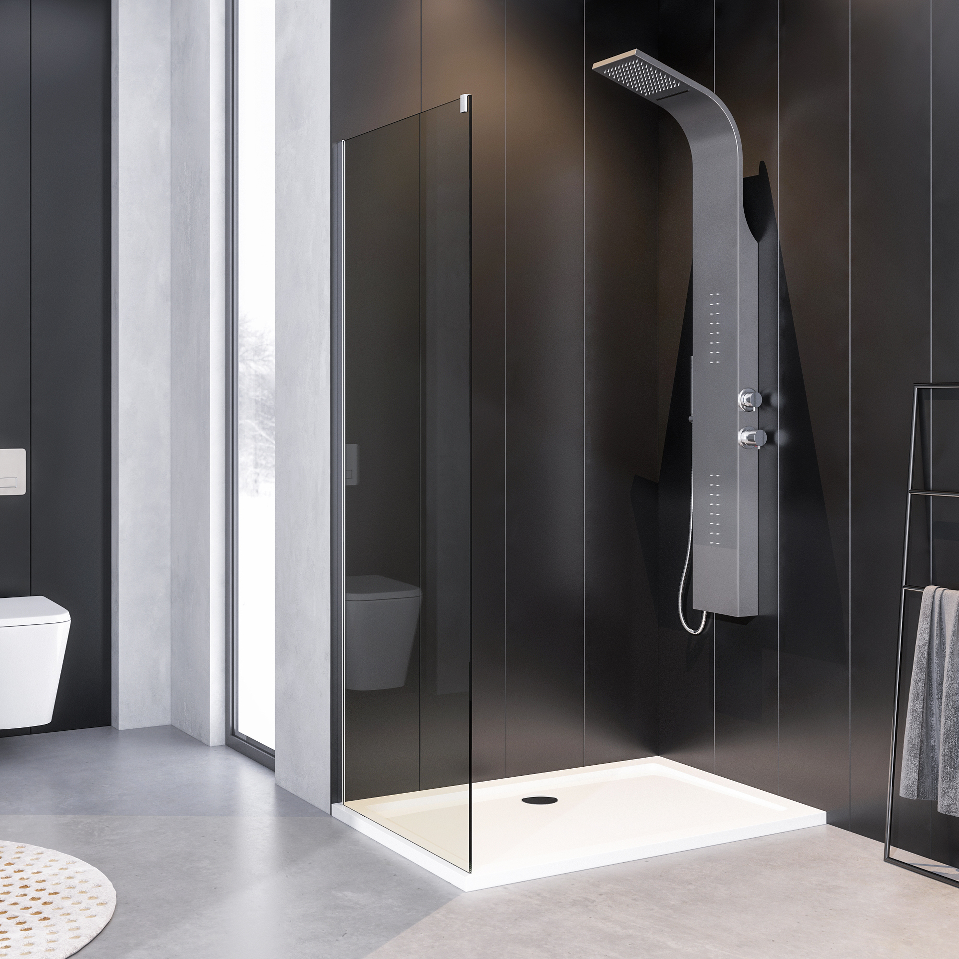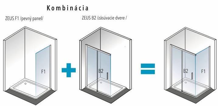 Pevná sklenená stena ZEUS F1, pre kombinácie série ZEUS. Farba kovových častí: chrómová. Výška sprchovacieho kútu 195 cm.