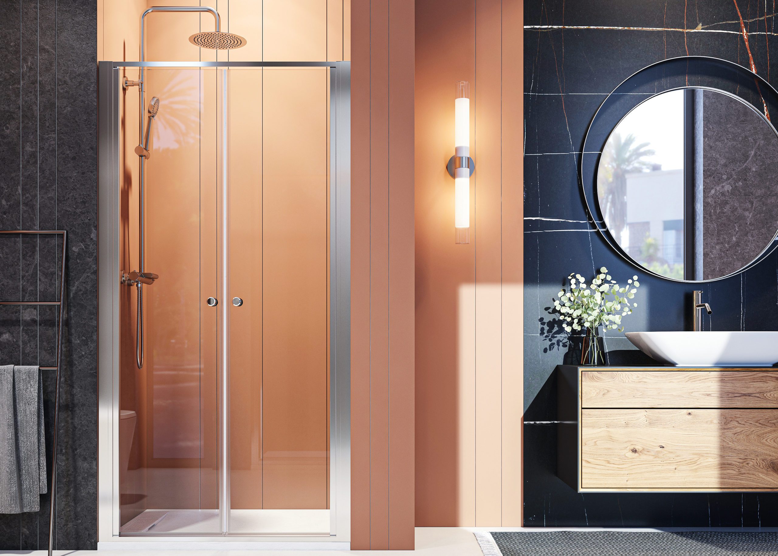 Sprchové dvere FAMILY B02 s dvomi otváracími dverami. Ekonomická voľba s vysokým ohľadom na kvalitu. Magnetické uzatváranie. Vyrovnávací bočný profil s 2 cm roztiahnutím. Kalené sklo hrubé 6 mm v prevedení grapé alebo číre s celkovou výškou sprchových dverí 190 cm. Rám pre otváracie dvere.