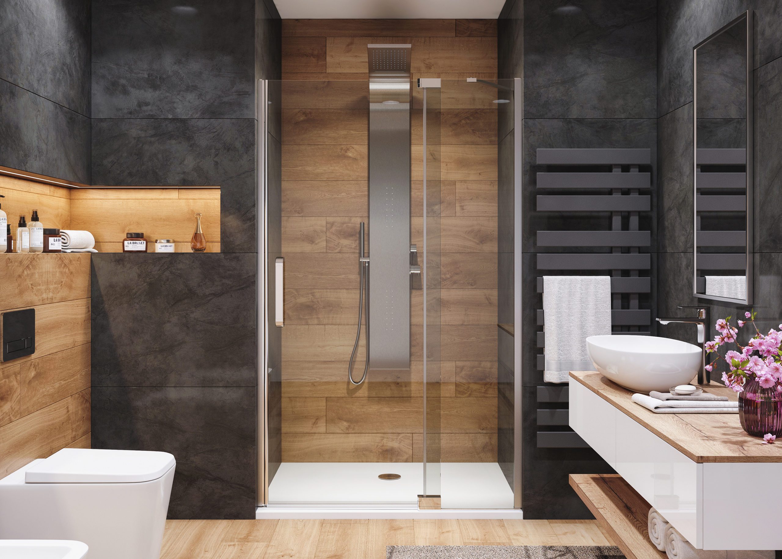 Séria posuvných sprchových kútov, dverí a zásten WELLNESS BLACK A4 sa vyznačuje najmä svojou kombinačnou variabilitou rôznych rozmerových riešení sprchovacieho priestoru. Novinkou, ktorú WELLNESS BLACK prináša je veľmi obľúbený walk-in systém, avšak s inovatívnou možnosťou posuvnej časti. Hrúbka skla 6 mm vo výške 200 cm definuje túto modelovú sériu aj z hľadiska jej priaznivej cenovej dostupnosti. Brzdiaci systém SOFT-Close pri otváraní a zatváraní dverí je neopomenuteľnou praktickou výhodou. Sklenené plochy sú ošetrené impregnačnou vrstvou antiplakovej úpravy Tekno.cal zjednodušujúcu ich pravidelnú údržbu.