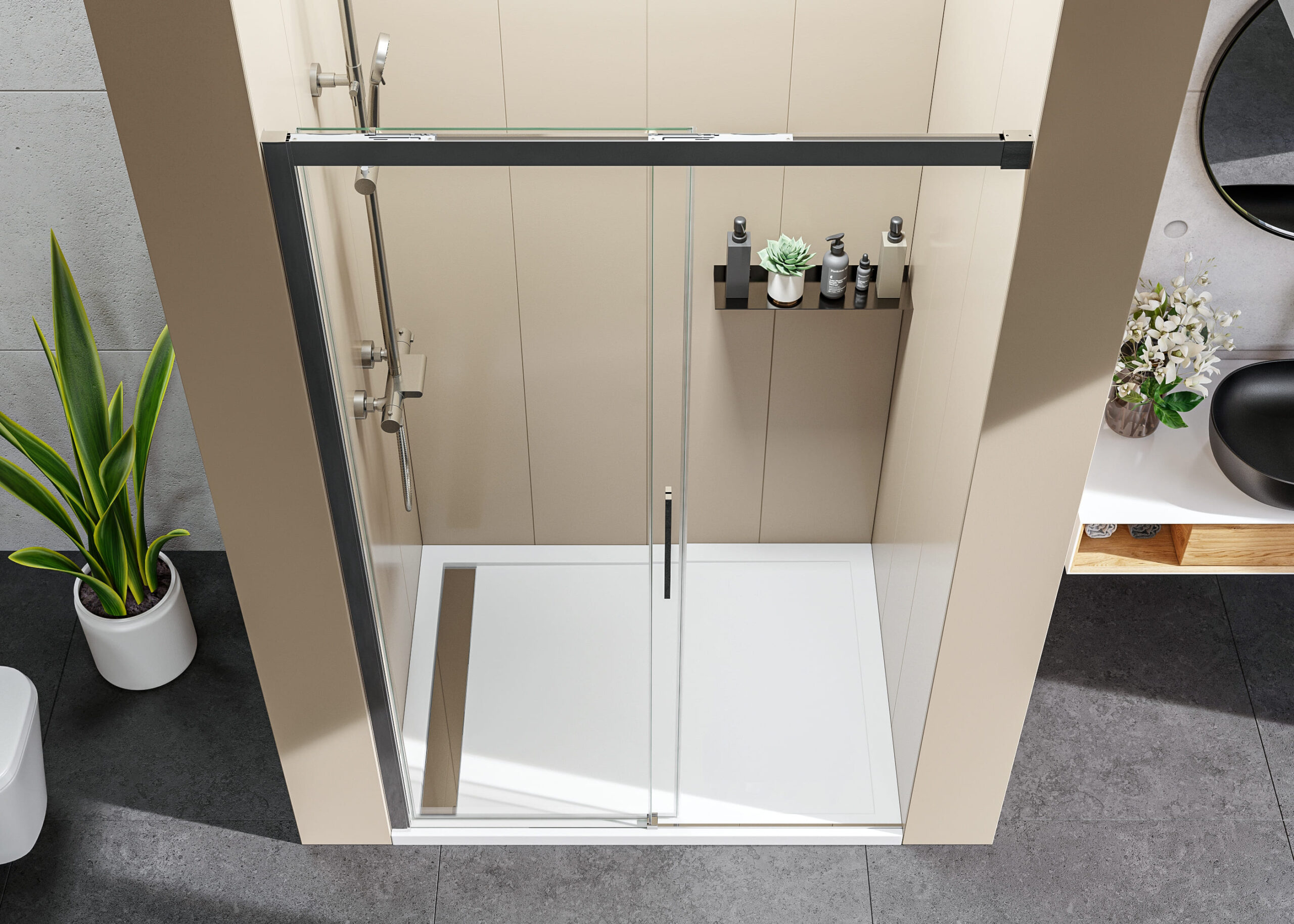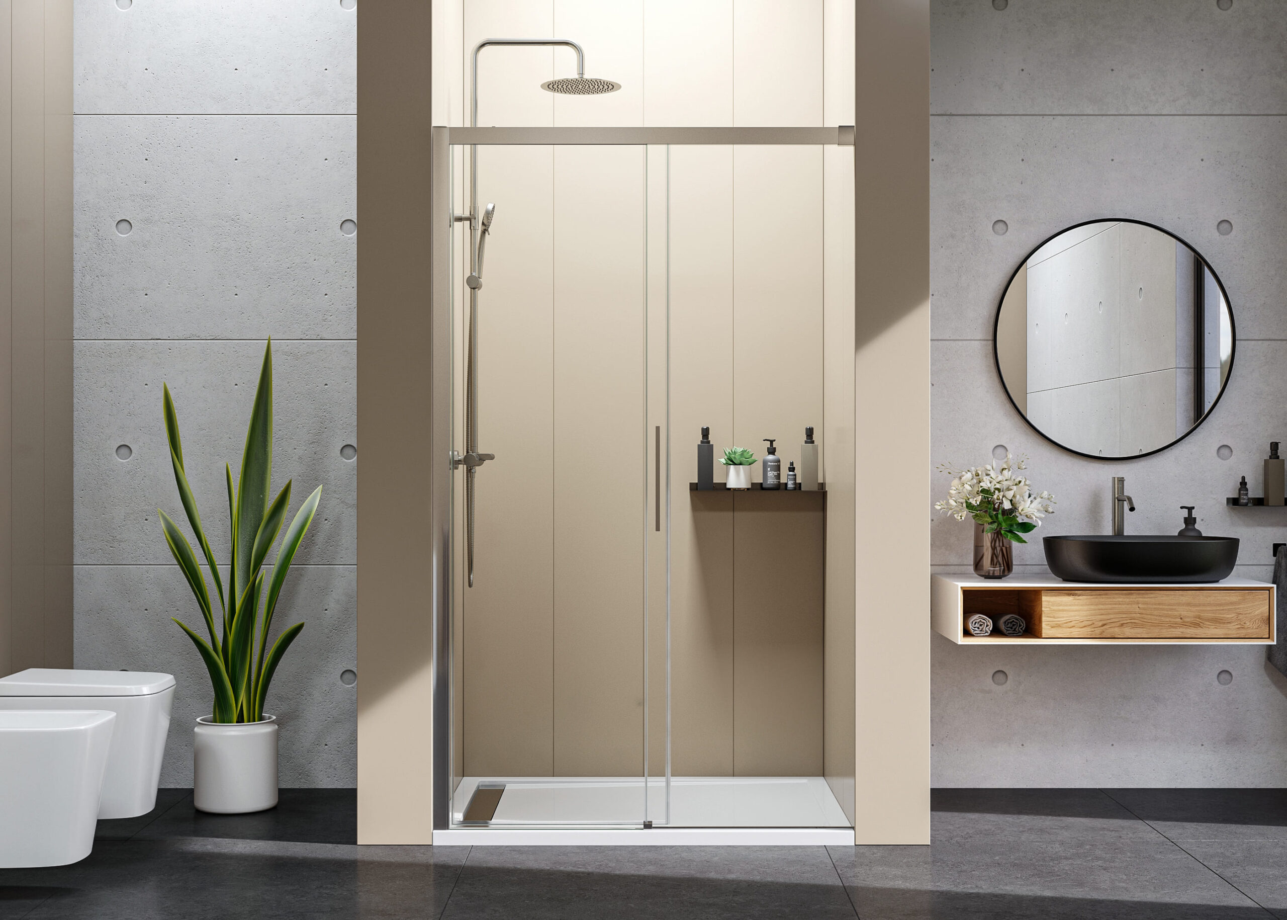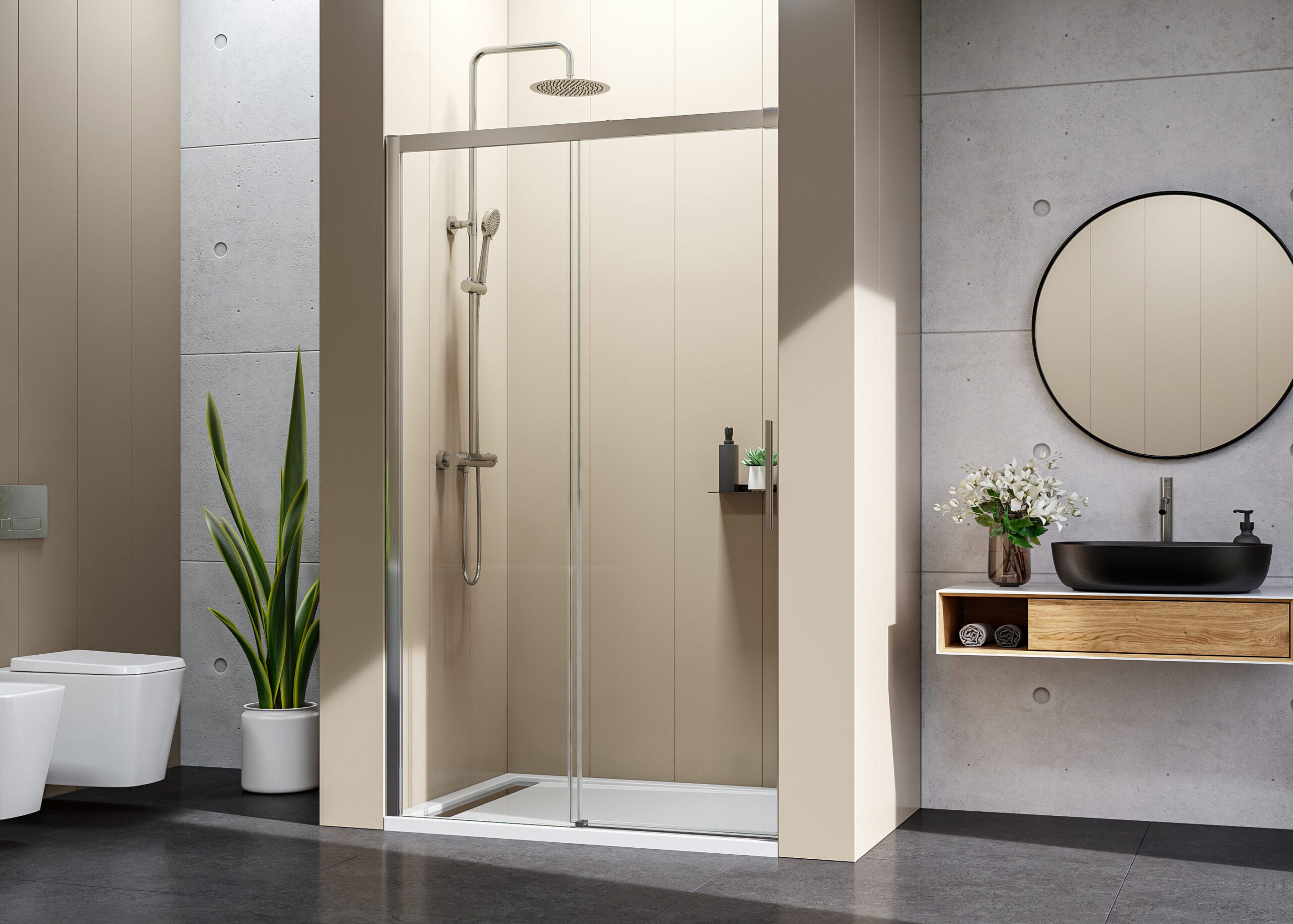 Séria posuvných sprchových kútov, dverí a zásten WELLNESS BLACK A4 sa vyznačuje najmä svojou kombinačnou variabilitou rôznych rozmerových riešení sprchovacieho priestoru. Novinkou, ktorú WELLNESS BLACK prináša je veľmi obľúbený walk-in systém, avšak s inovatívnou možnosťou posuvnej časti. Hrúbka skla 6 mm vo výške 200 cm definuje túto modelovú sériu aj z hľadiska jej priaznivej cenovej dostupnosti. Brzdiaci systém SOFT-Close pri otváraní a zatváraní dverí je neopomenuteľnou praktickou výhodou. Sklenené plochy sú ošetrené impregnačnou vrstvou antiplakovej úpravy Tekno.cal zjednodušujúcu ich pravidelnú údržbu.