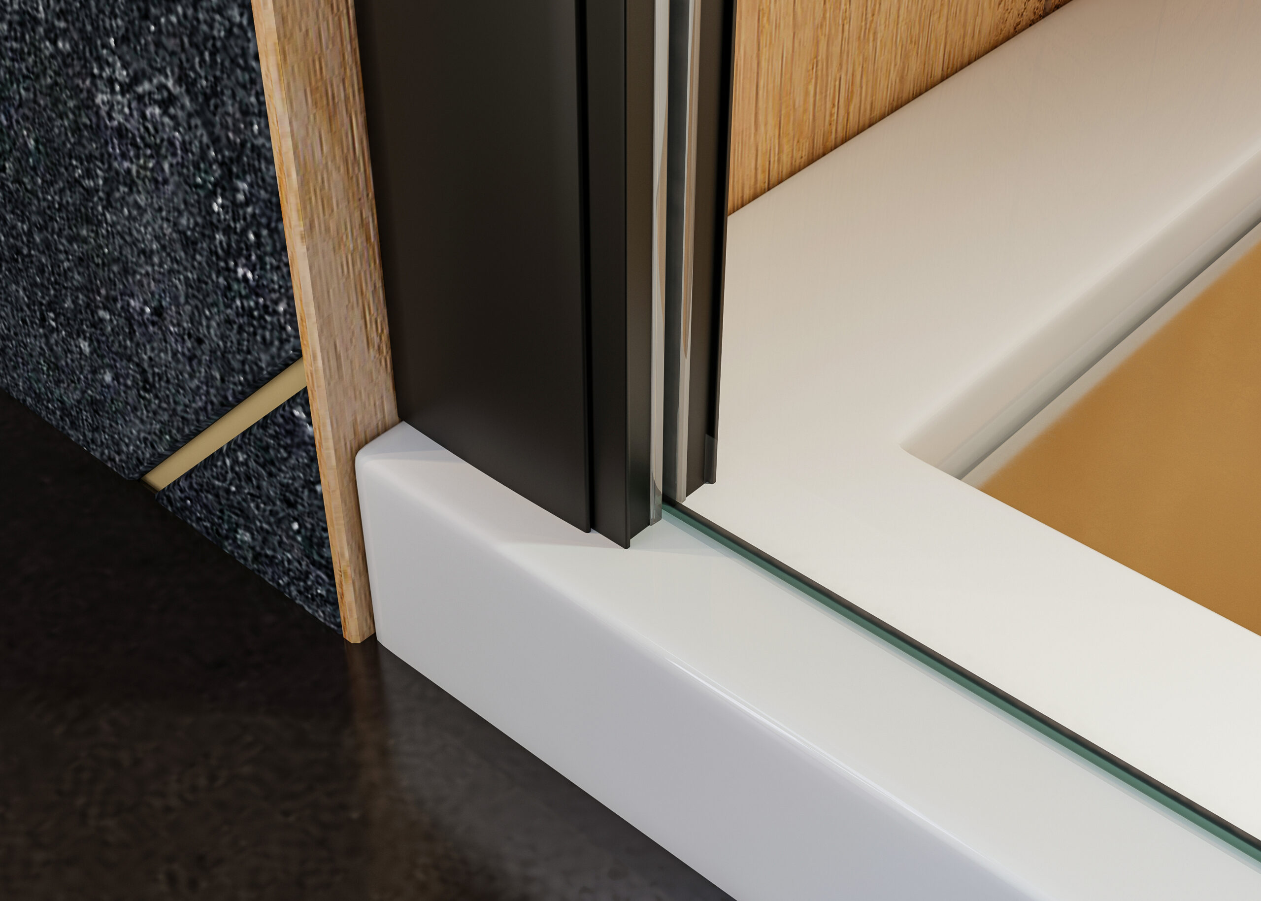 Séria posuvných sprchových kútov, dverí a zásten WELLNESS BLACK A4 sa vyznačuje najmä svojou kombinačnou variabilitou rôznych rozmerových riešení sprchovacieho priestoru. Novinkou, ktorú WELLNESS BLACK prináša je veľmi obľúbený walk-in systém, avšak s inovatívnou možnosťou posuvnej časti. Hrúbka skla 6 mm vo výške 200 cm definuje túto modelovú sériu aj z hľadiska jej priaznivej cenovej dostupnosti. Brzdiaci systém SOFT-Close pri otváraní a zatváraní dverí je neopomenuteľnou praktickou výhodou. Sklenené plochy sú ošetrené impregnačnou vrstvou antiplakovej úpravy Tekno.cal zjednodušujúcu ich pravidelnú údržbu.