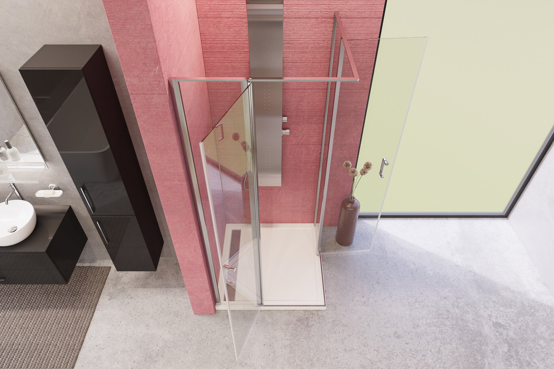 Neopomenuteľnou prioritou tejto série je však aj dômyselné otváranie pántov dverí obojsmerne, teda súčasne von aj dnu. Výplne číreho alebo nepriehľadného (grapé) skla sú ošetrené antiplakovou impregnáciou TEKNO.cal, majú hrúbku 6 mm , čo jednoznačne zaraďuje túto sériu na prvé priečky aj z hľadiska finančného rozpočtu. Veľkorysá celková výška 200 cm však necháva vyniknúť týmto modelom ako dominante Vašej vysnívanej kúpeľne.