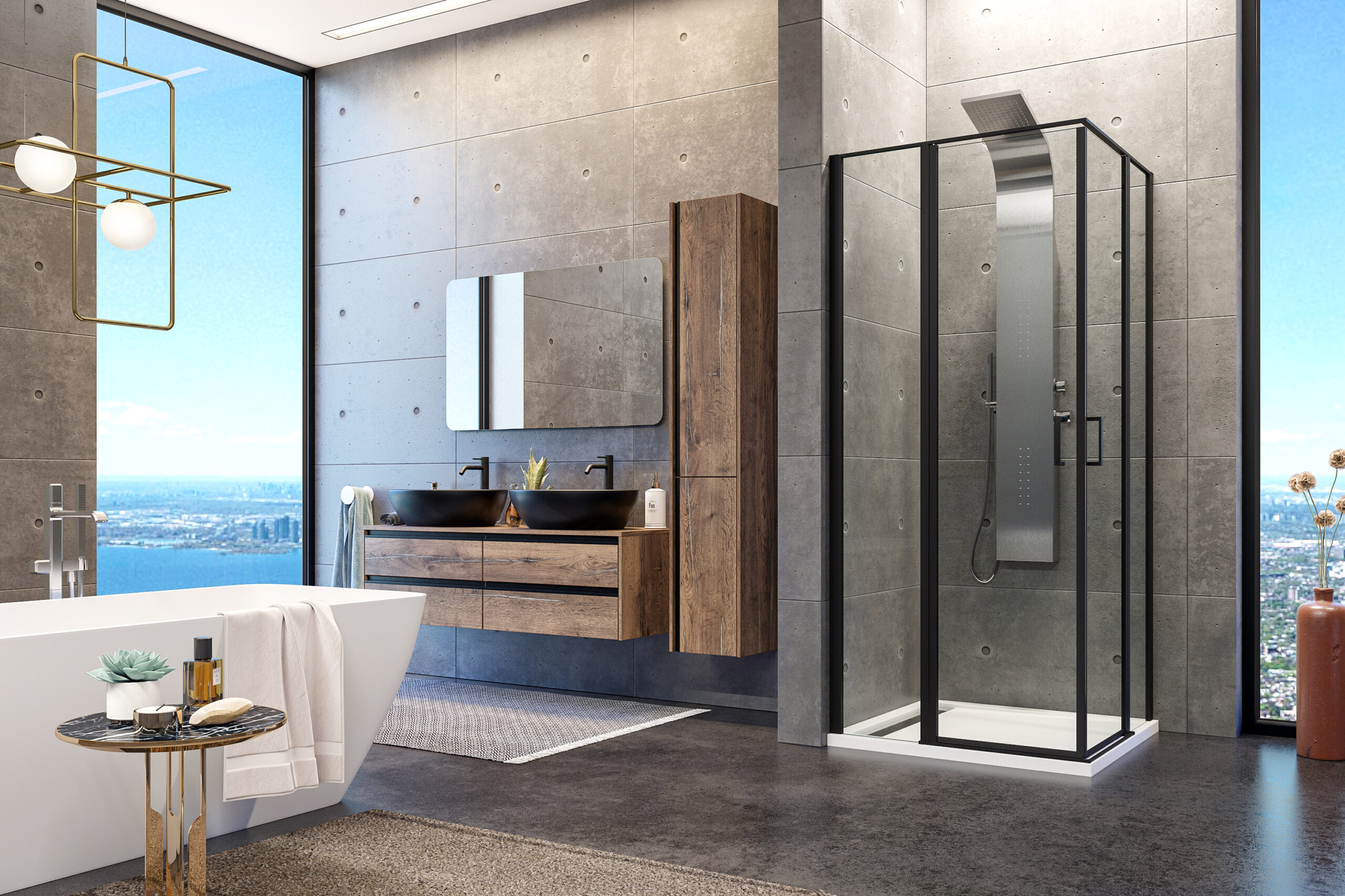 Neopomenuteľnou prioritou tejto série je však aj dômyselné otváranie pántov dverí obojsmerne, teda súčasne von aj dnu. Výplne číreho skla sú ošetrené antiplakovou impregnáciou TEKNO.cal, majú hrúbku 6 mm , čo jednoznačne zaraďuje túto sériu na prvé priečky aj z hľadiska finančného rozpočtu. Veľkorysá celková výška 200 cm však necháva vyniknúť týmto modelom ako dominante Vašej vysnívanej kúpeľne.
