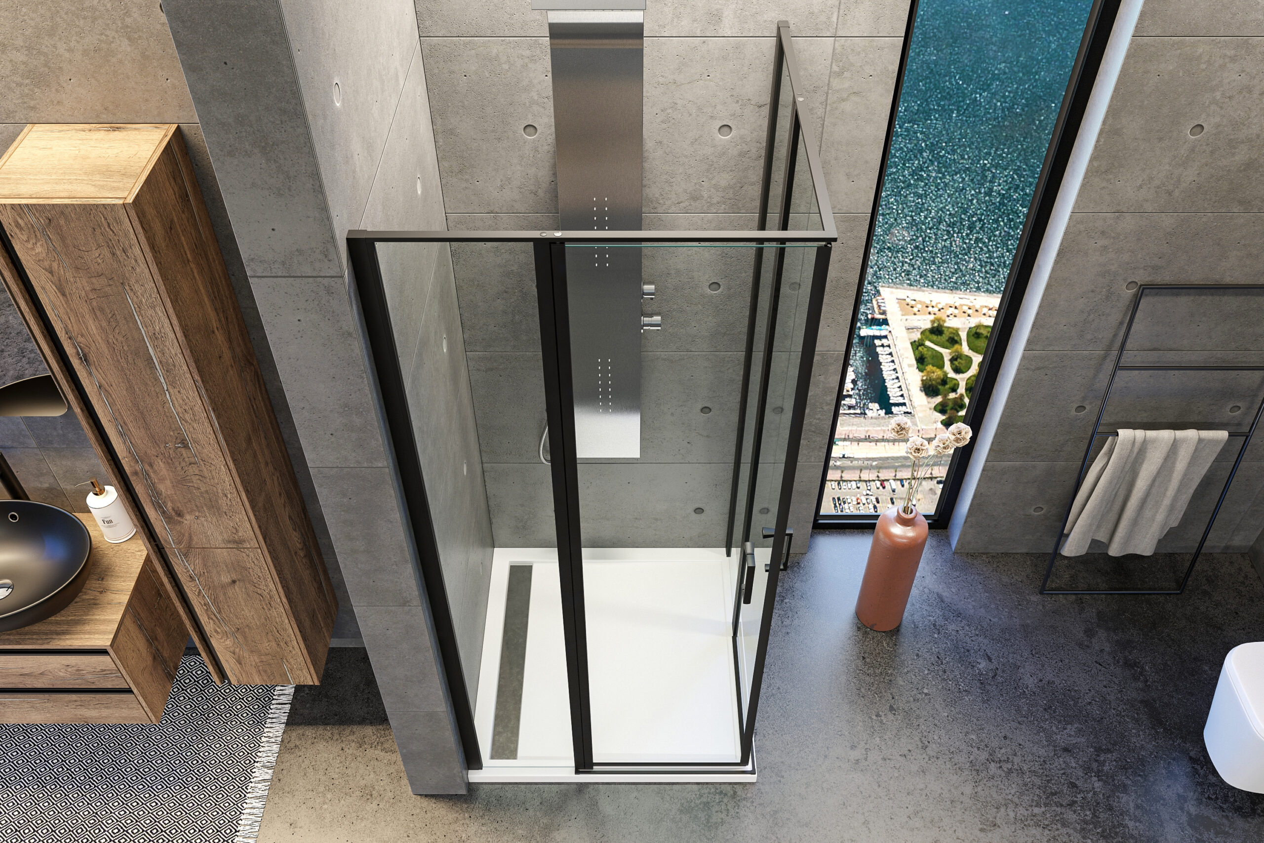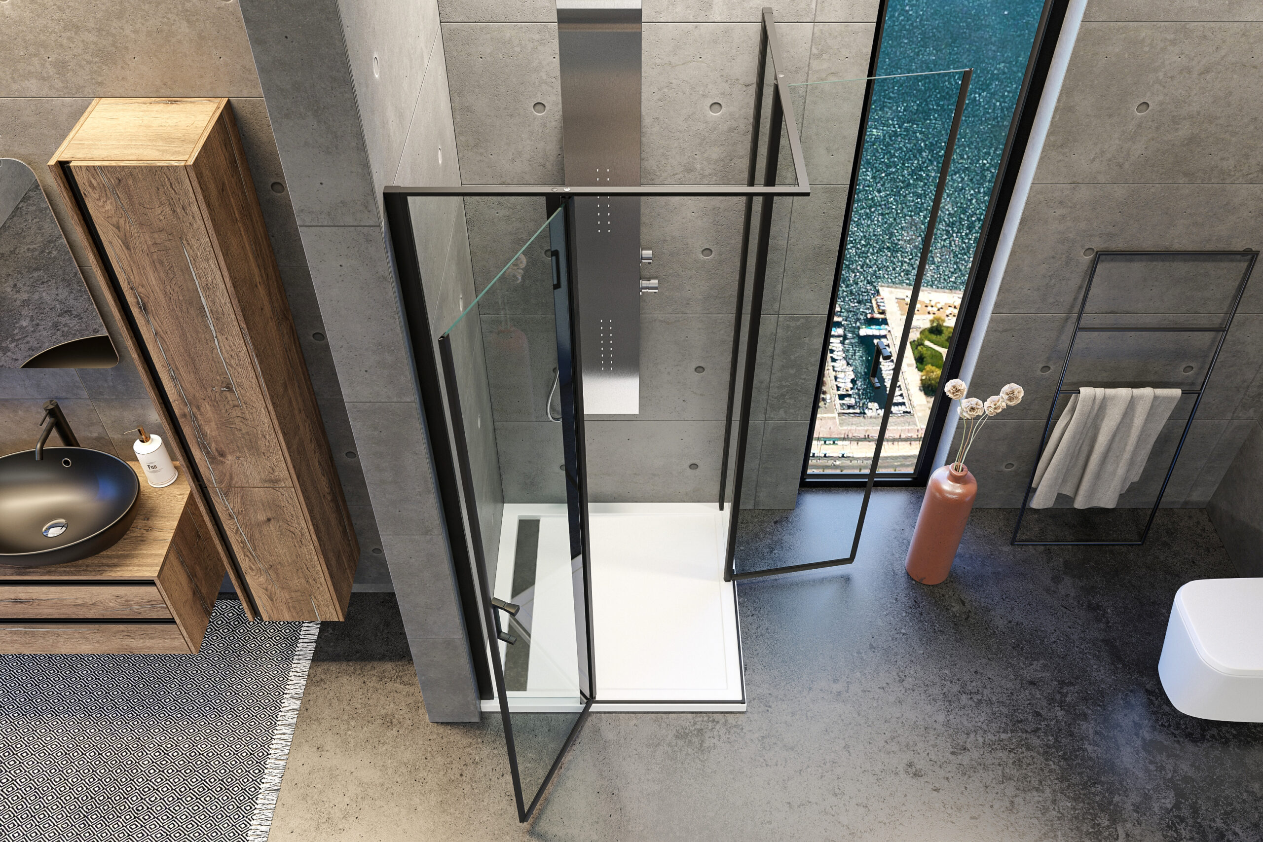 Séria posuvných sprchových kútov, dverí a zásten WELLNESS BLACK A4 sa vyznačuje najmä svojou kombinačnou variabilitou rôznych rozmerových riešení sprchovacieho priestoru. Novinkou, ktorú WELLNESS BLACK prináša je veľmi obľúbený walk-in systém, avšak s inovatívnou možnosťou posuvnej časti. Hrúbka skla 6 mm vo výške 200 cm definuje túto modelovú sériu aj z hľadiska jej priaznivej cenovej dostupnosti. Brzdiaci systém SOFT-Close pri otváraní a zatváraní dverí je neopomenuteľnou praktickou výhodou. Sklenené plochy sú ošetrené impregnačnou vrstvou antiplakovej úpravy Tekno.cal zjednodušujúcu ich pravidelnú údržbu.