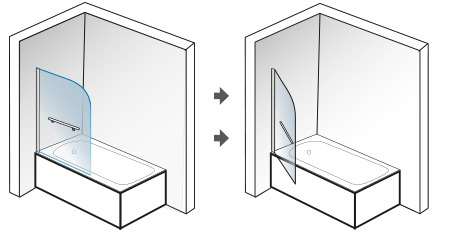 Vaňová zástena GLASS L1 s pántom otočným o 180 st. Dizajnové spojenie skla a kovu s efektným a navyše praktickým vodorovným madlom. V dostupnosti výplní v skle čírom alebo nepriehľadnom skle frost v hrúbke 6 mm a štandardnej výške 140 cm. Farba hliníkových profilov v chróme.