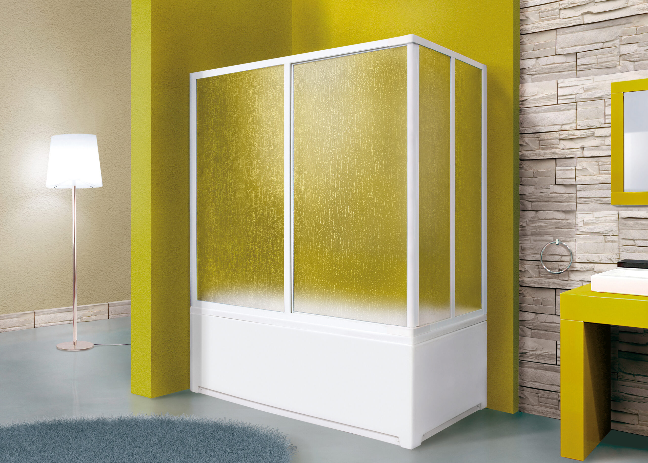 Zasúvacie dvere nad vaňu ROYAL VA4. Kvalitné hrubé hliníkové profily bielej farby, špeciálne tepelne upravované a striekané. Plastová výplň o hrúbke 2,2 mm (krilex) vo vzore stekajúcej vody. Štandardná výška 140 cm. Plynulé zasúvanie dverí vaňovaj zásteny pomocou špeciálnych plastových komponentov (plastových háčikov). Vyrovnávací bočný profil až s 2,5 cm roztiahnutím a magnetické uzatváranie. Plastový roh s roztiahnutím 10 cm. Jednoduchá montáž a nenáročná údržba.