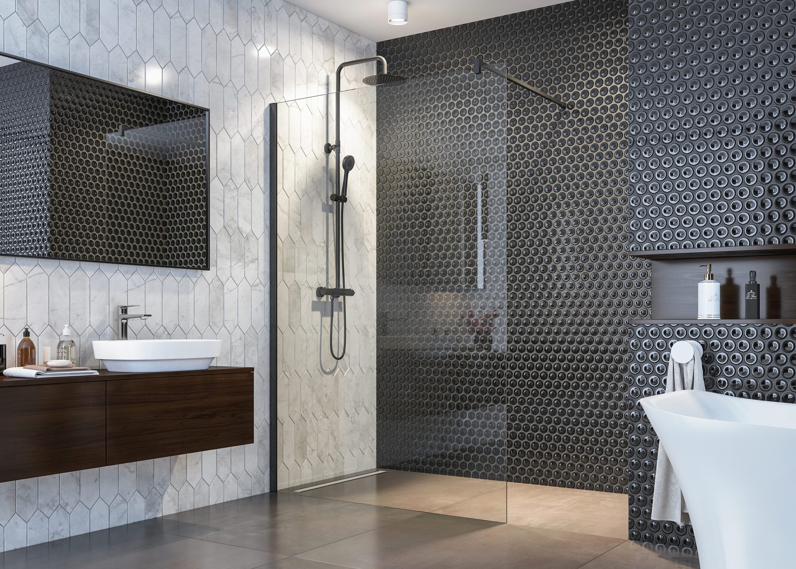 Séria posuvných sprchových kútov, dverí a zásten WELLNESS BLACK A4 sa vyznačuje najmä svojou kombinačnou variabilitou rôznych rozmerových riešení sprchovacieho priestoru. Novinkou, ktorú WELLNESS BLACK prináša je veľmi obľúbený walk-in systém, avšak s inovatívnou možnosťou posuvnej časti. Hrúbka skla 6 mm vo výške 200 cm definuje túto modelovú sériu aj z hľadiska jej priaznivej cenovej dostupnosti. Brzdiaci systém SOFT-Close pri otváraní a zatváraní dverí je neopomenuteľnou praktickou výhodou. Sklenené plochy sú ošetrené impregnačnou vrstvou antiplakovej úpravy Tekno.cal zjednodušujúcu ich pravidelnú údržbu.