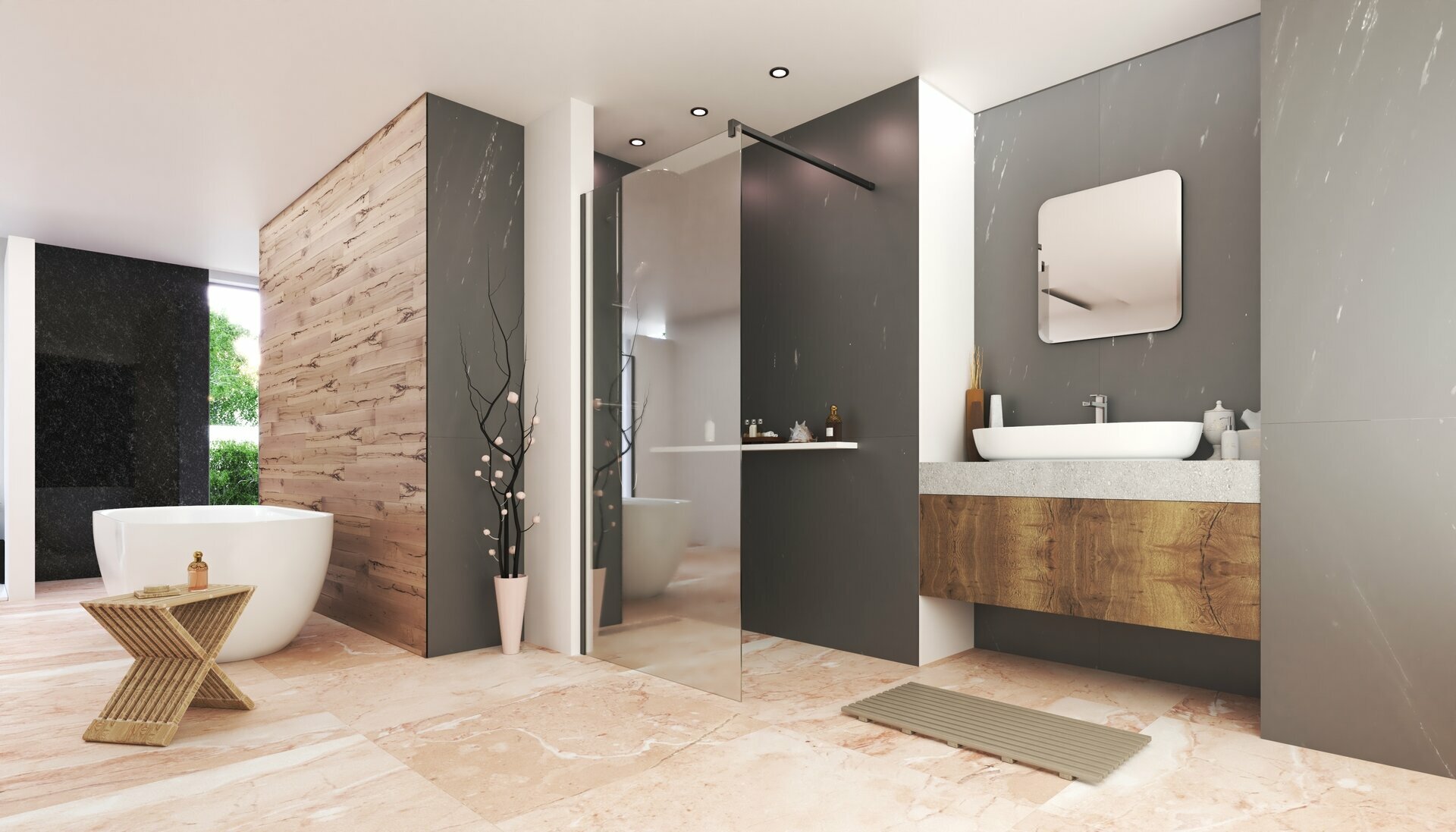 Kombinovateľný systém pevných skiel Walk-in systém
