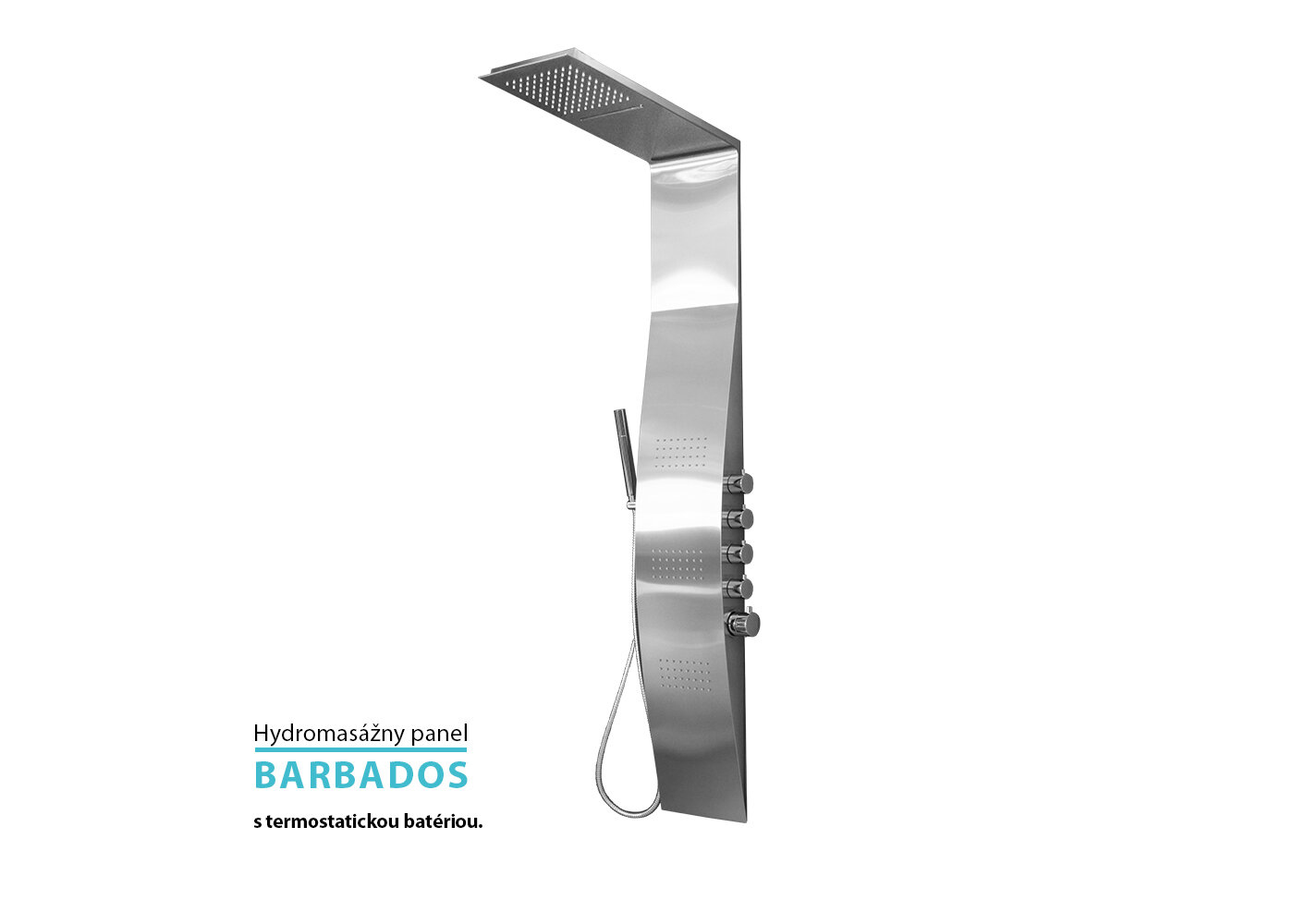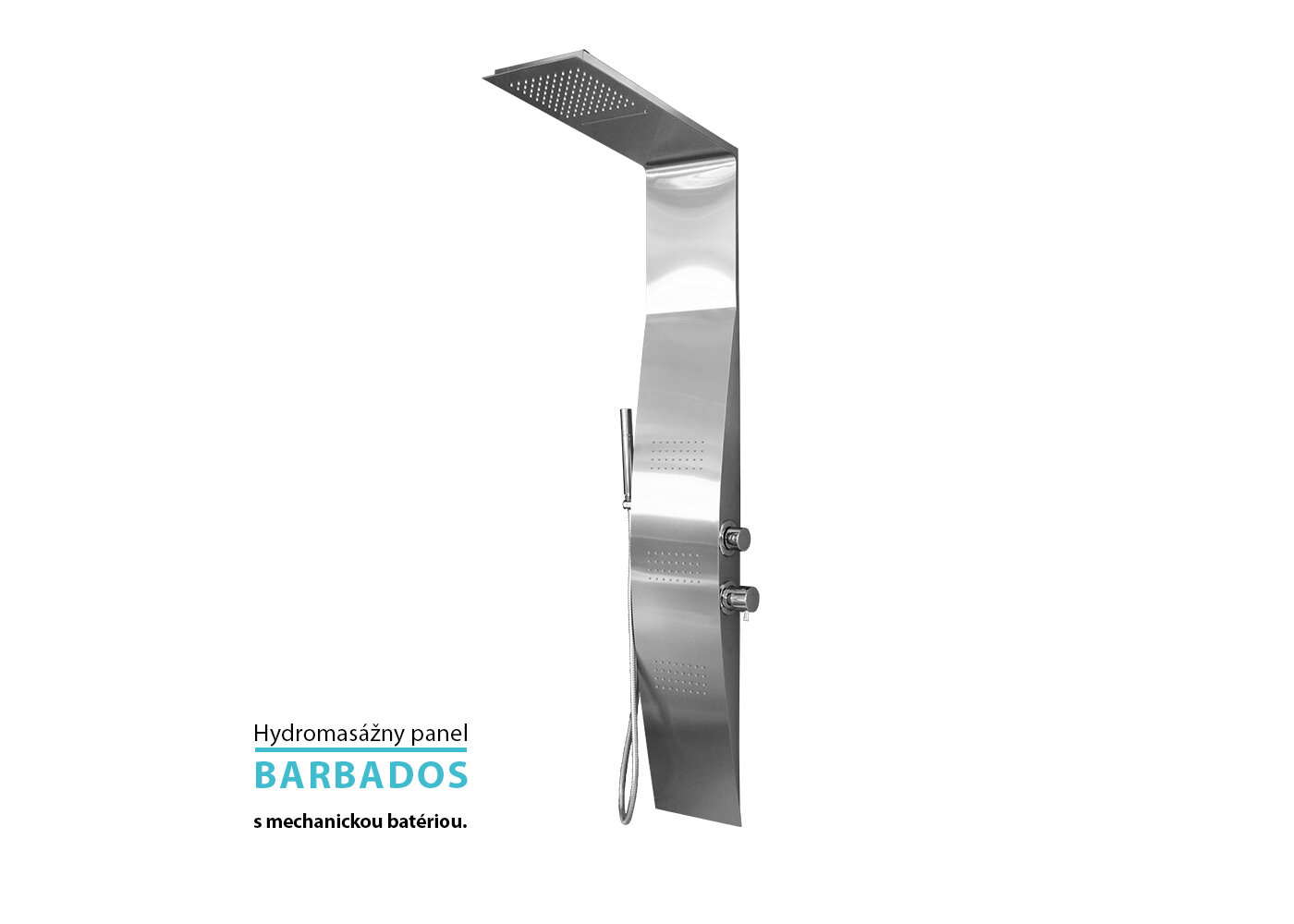 Aj prostredníctvom hydromasážneho panelu BARBADOS vytvoríte luxusný sprchovací priestor. Hydromasážne sprchové panely majú vrchnú sprchu, ktorá je pevná a spodnú sprchu, ktorá je spojená s panelom chrómovou flexibilnou hadicou. Funkcie panelu sa programujú pomocou regulátora. K montáži nepotrebujete žiadne špeciálne zariadenia. Jednoducho ho pripojíte flexibilnými hadicami na prívod teplej a studenej vody.