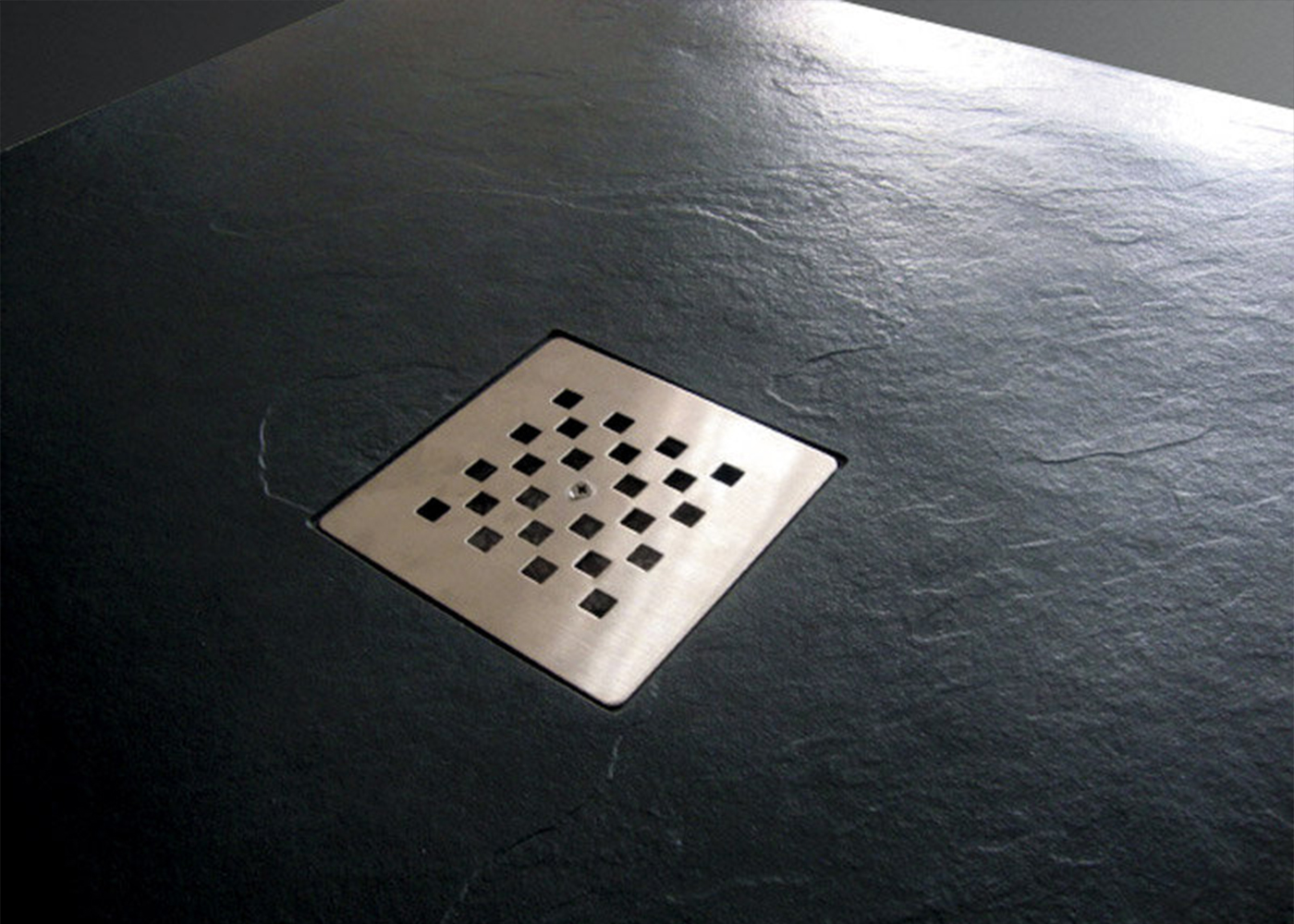 Štýlová nízka sprchová vanička TOP z liateho mramoru so štruktúrou imitujúcou povrch prírodného kameňa.