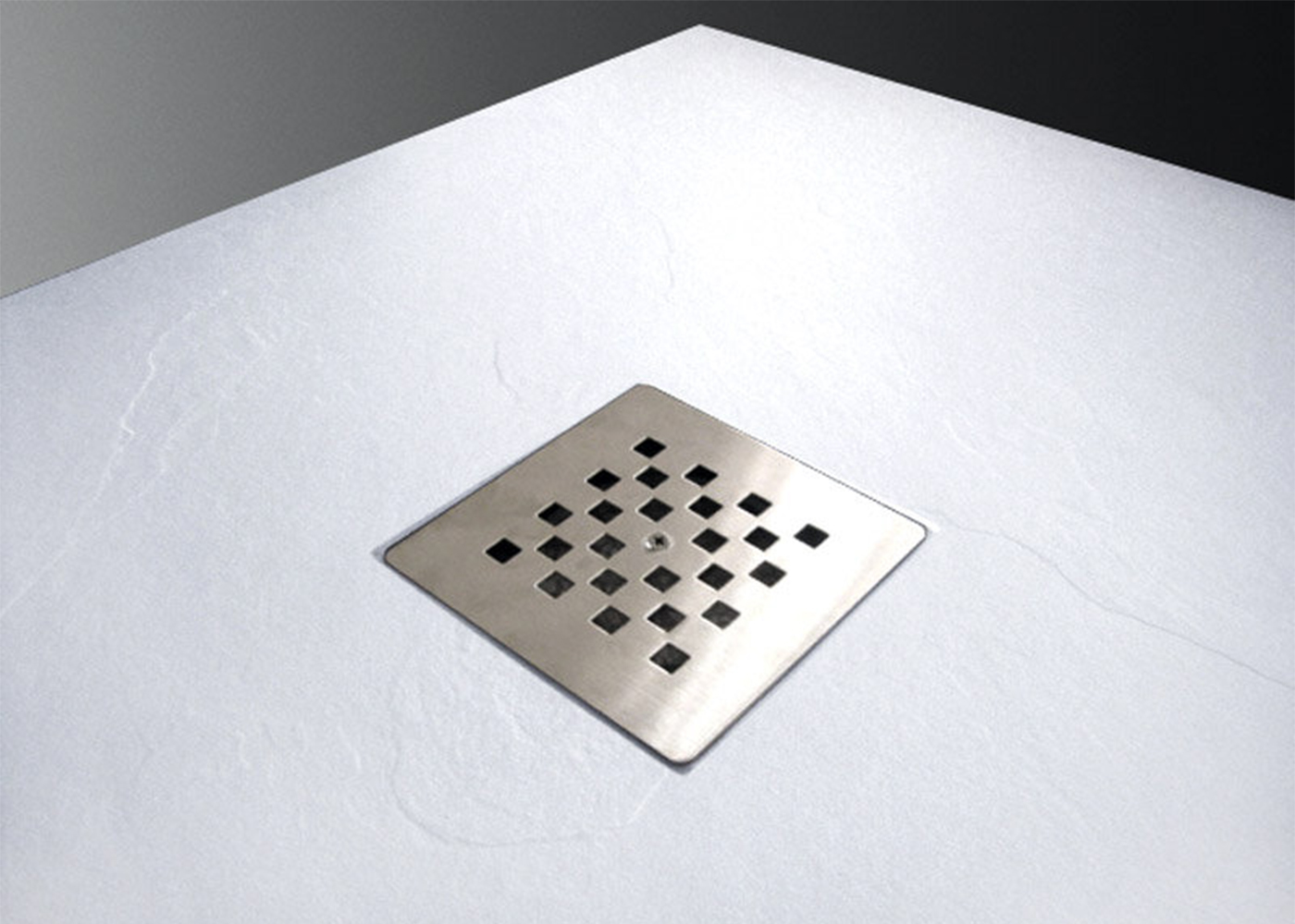 Štýlová nízka sprchová vanička TOP z liateho mramoru so štruktúrou imitujúcou povrch prírodného kameňa.