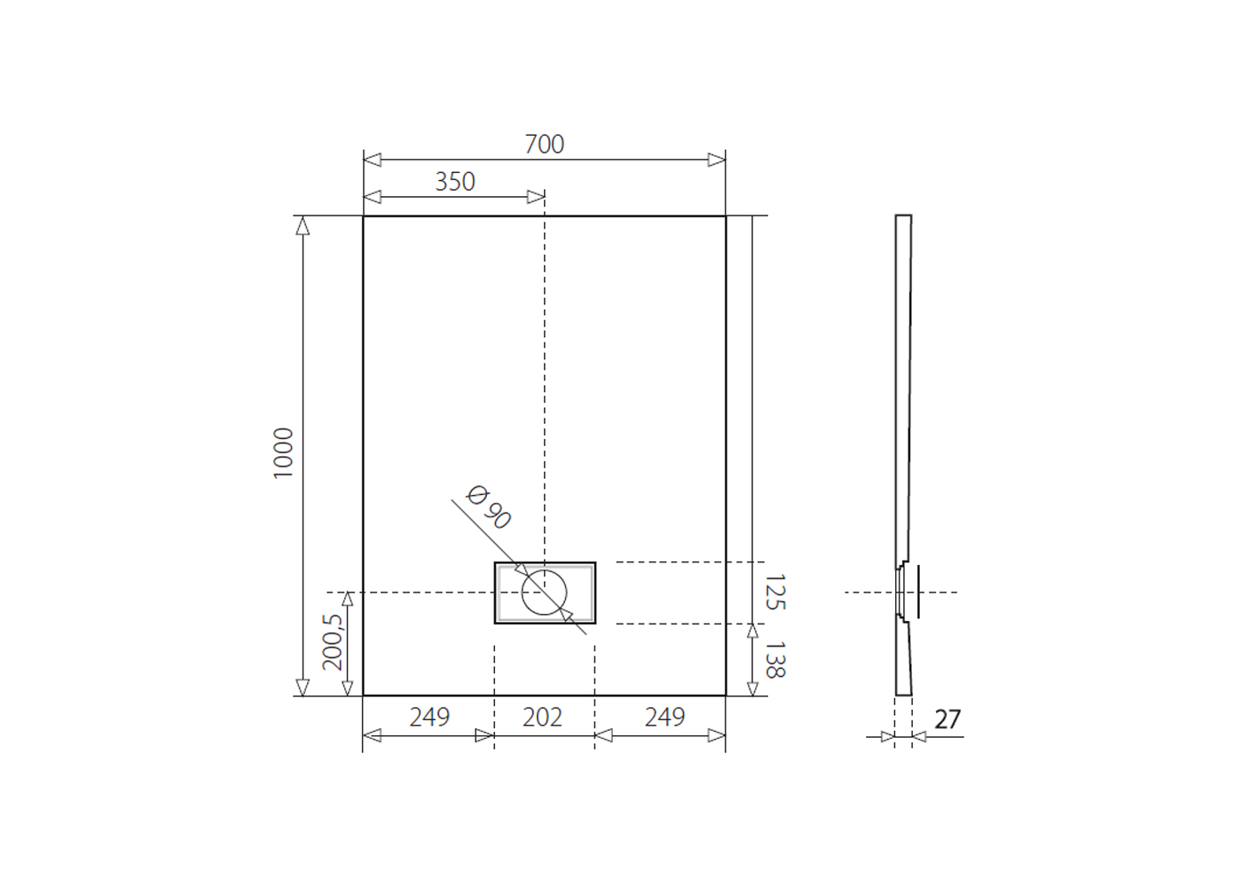 Sprchová vanička z tvrdeného polyméru