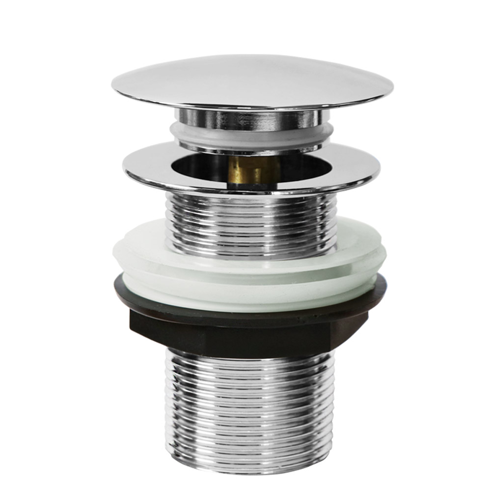 Chrómový výpust s veľkou chrómovou zátkou bez prepadu. KLIK – KLAK G5/4″ bez prepadu, s veľkým kovovým pochrómovaným krytom. Určená pre umývadlá z tvrdeného liateho kameňa s odtokom priemeru G5/4“.