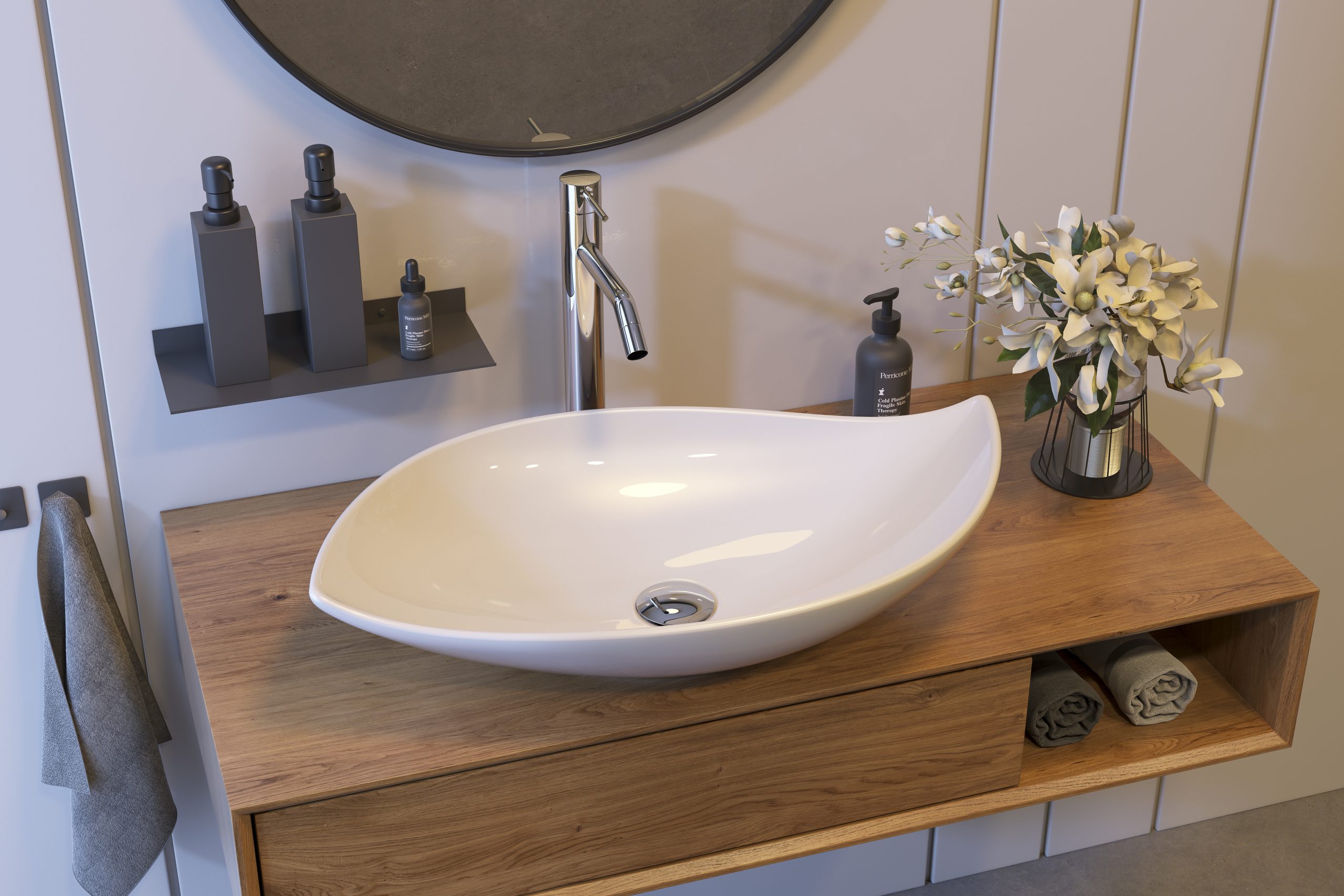 Oválne keramické umývadlo bez otvoru pre batériu, bez prepadu.