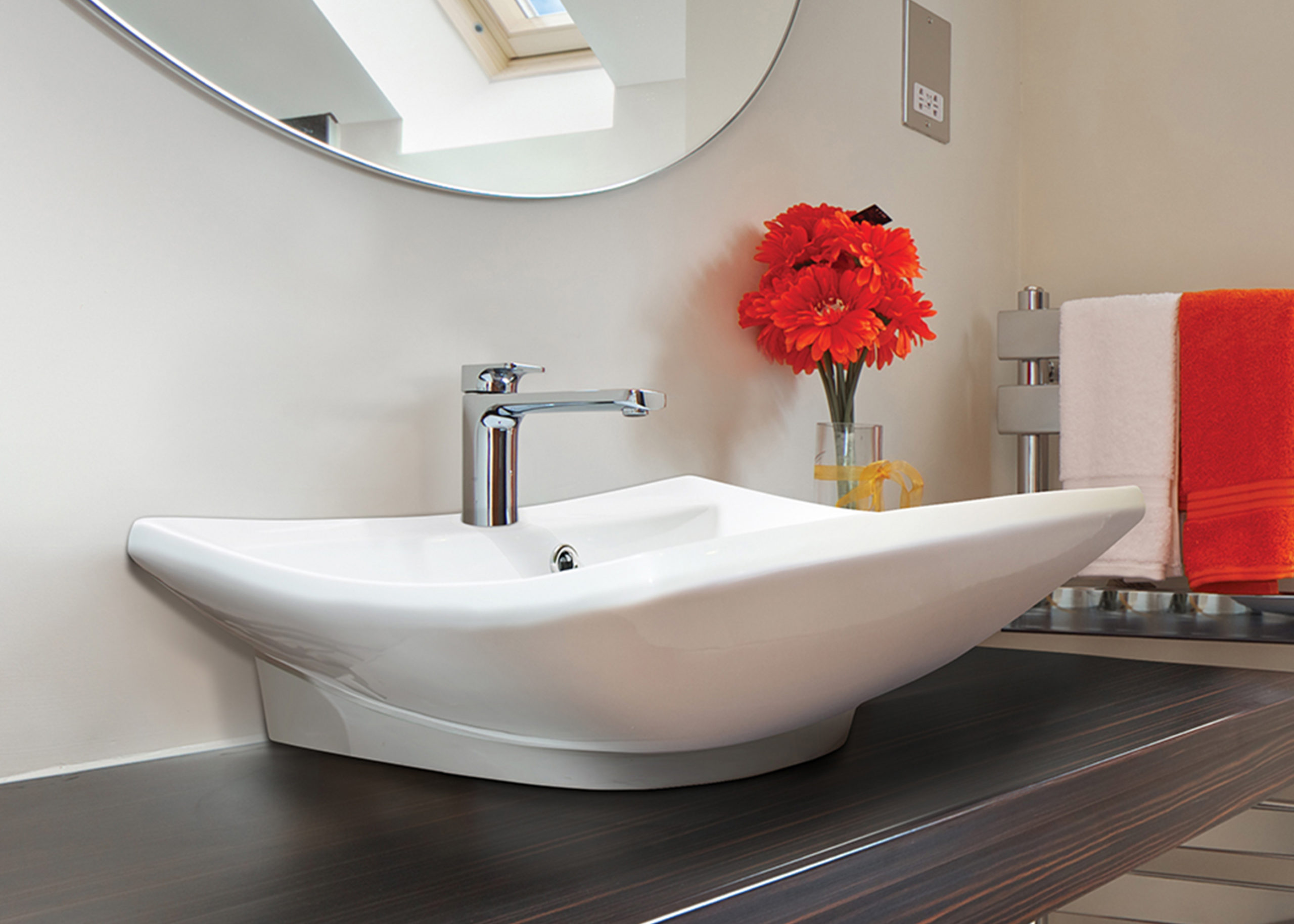 Atypické keramické umývadlo bez otvoru pre batériu, bez prepadu.