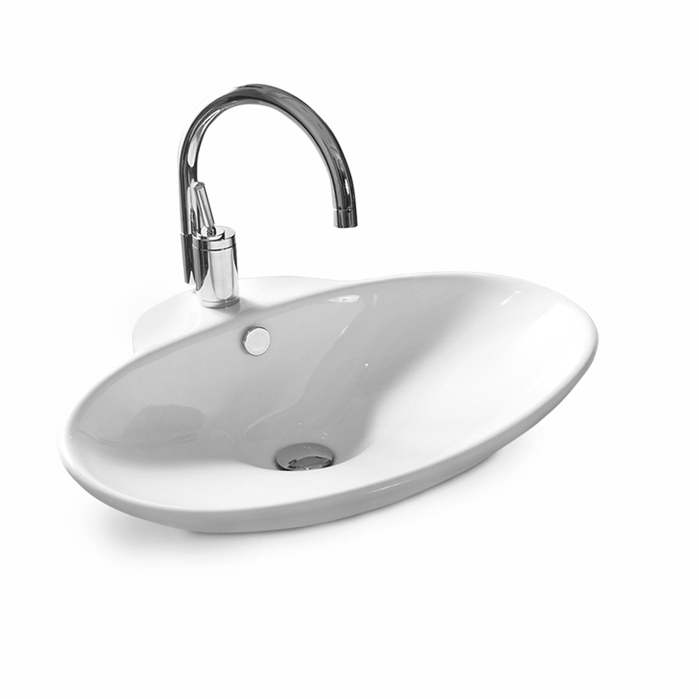 Oválne keramické umývadlo bez otvoru pre batériu, bez prepadu.