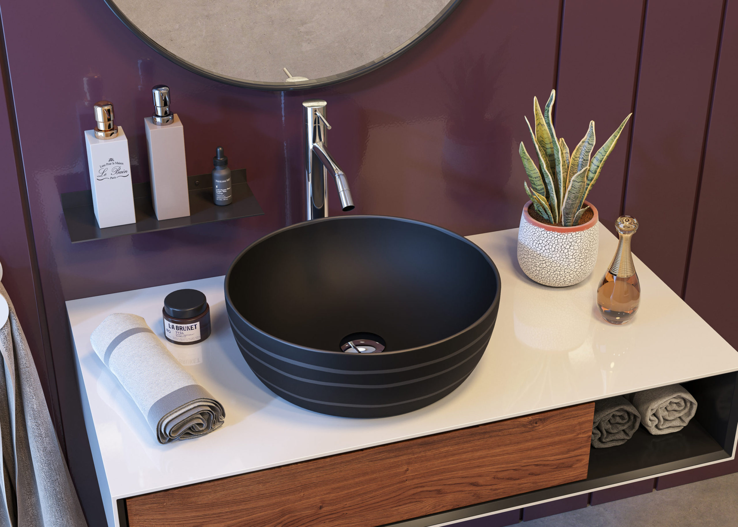 Kruhové keramické umývadlo bez otvoru pre batériu, bez prepadu.