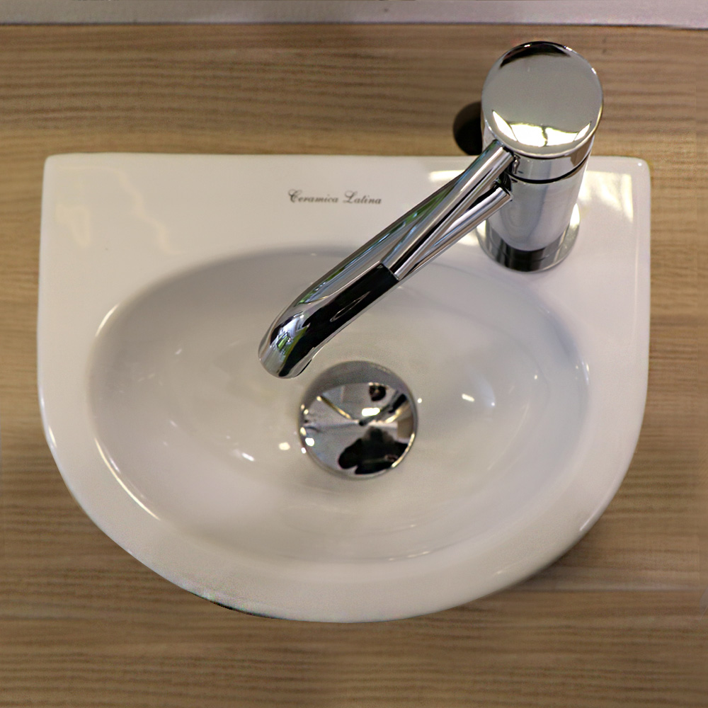 Mini keramické umývadlo s otvorom pre batériu, bez prepadu.