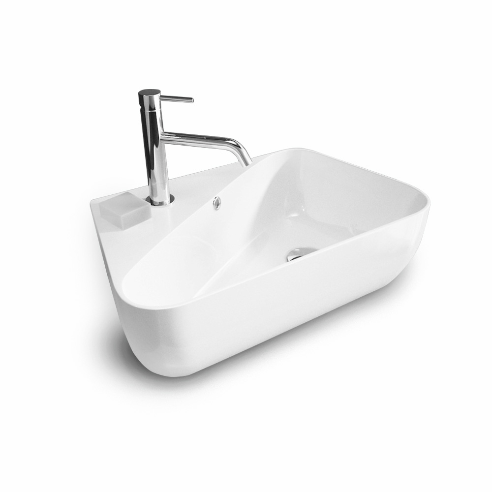 Mini obdélníkové keramické umyvadlo s otvorem pro baterii, s přepadem.