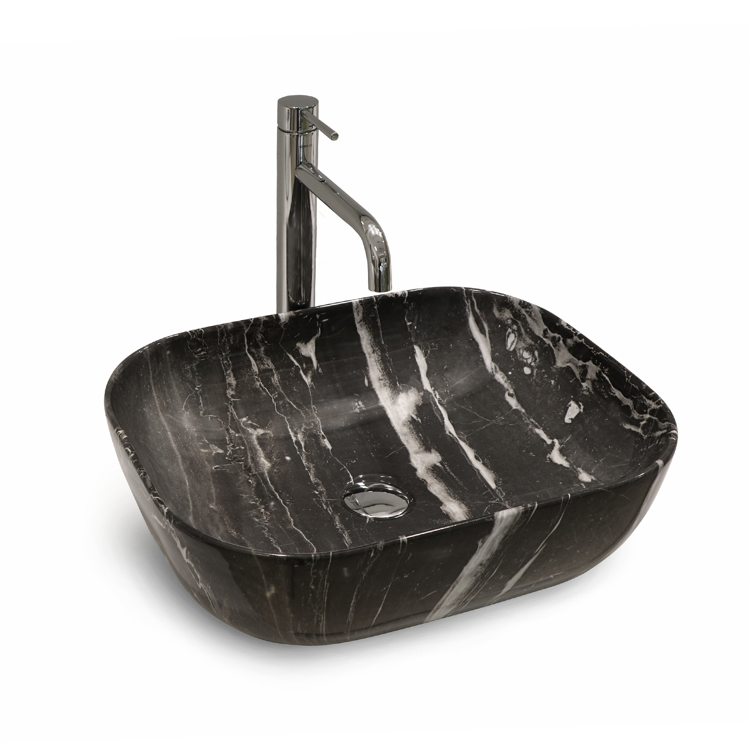 Obdĺžnikové keramické umývadlo so zaoblenými rohmi bez otvoru pre batériu, bez prepadu.