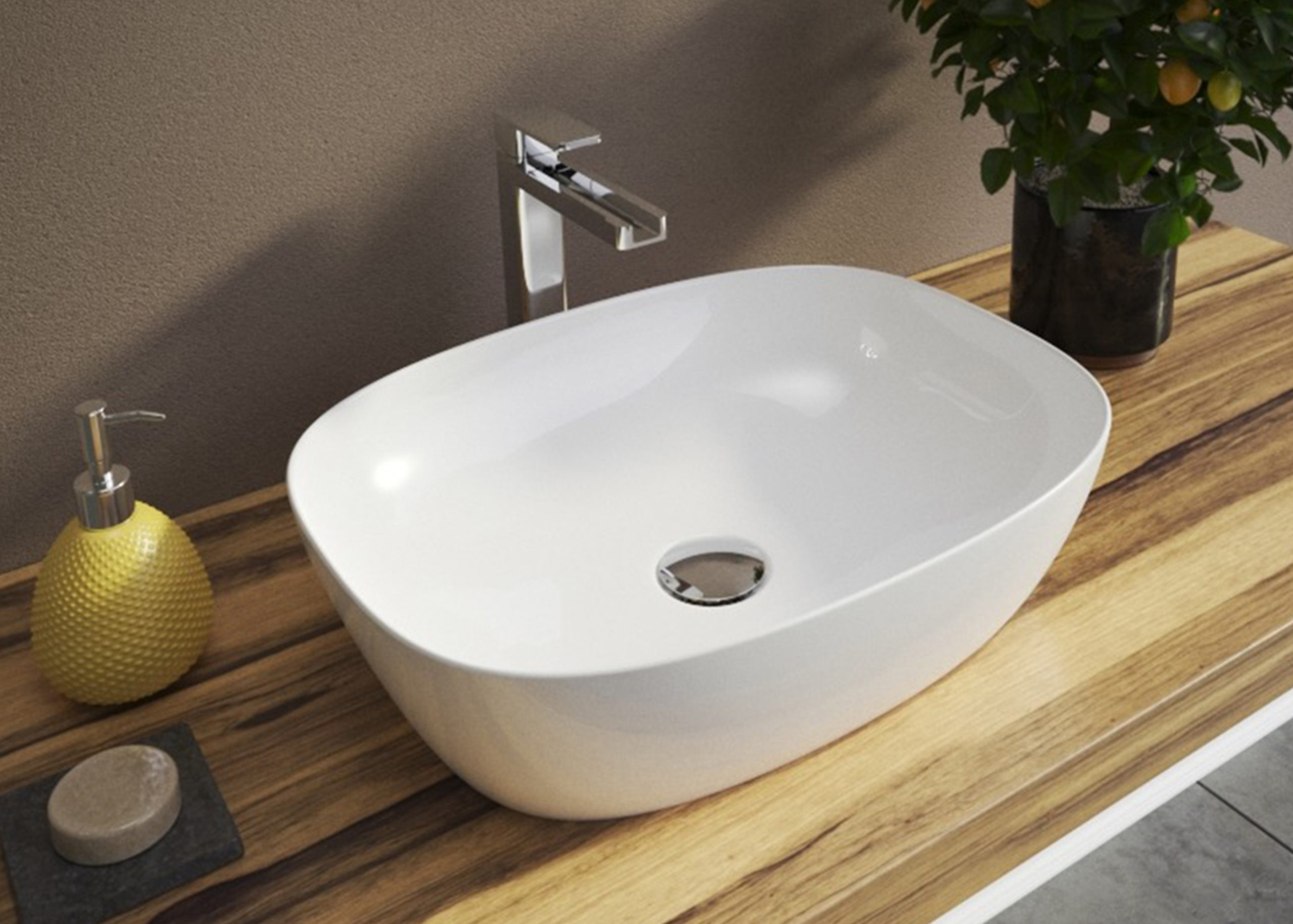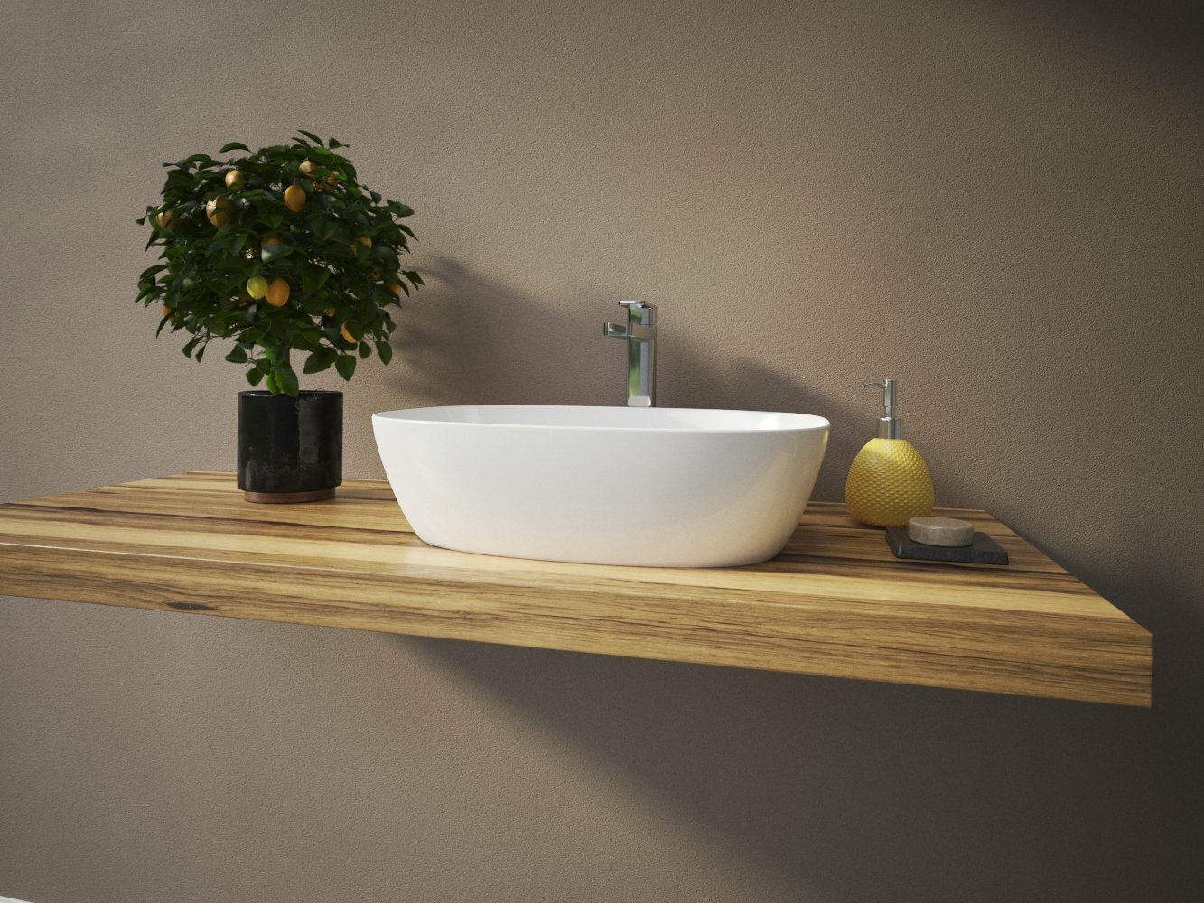 Oválne keramické umývadlo bez otvoru pre batériu, bez prepadu.