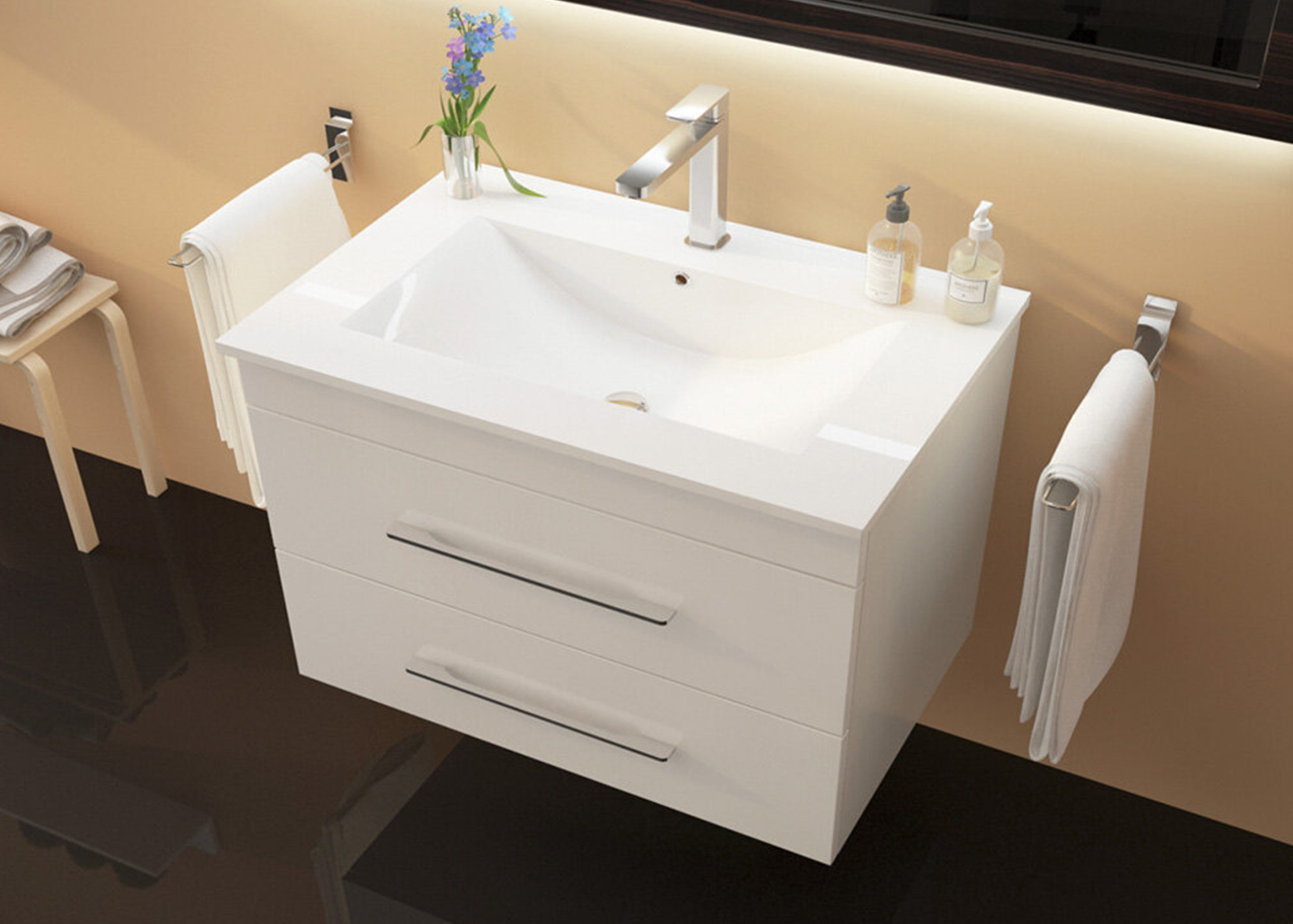 Umývadlo s prepojenými bočnými plochami, riešené symetricky. Určené na položenie na skrinku či pult. Monumentálny dojem dotvorí veľkorysé architektonické riešenie.