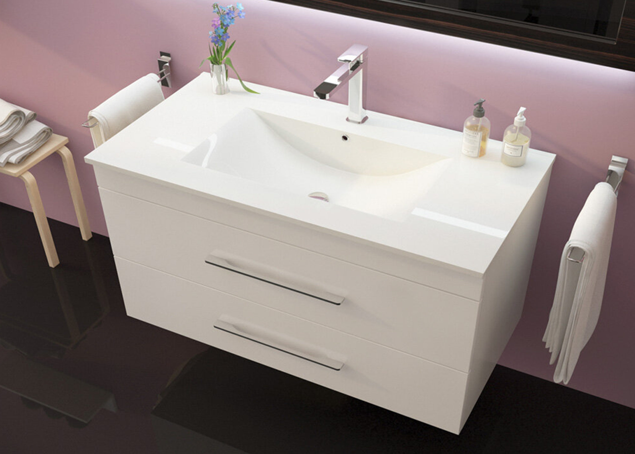 Umývadlo s prepojenými bočnými plochami, riešené symetricky. Určené na položenie na skrinku či pult. Monumentálny dojem dotvorí veľkorysé architektonické riešenie.