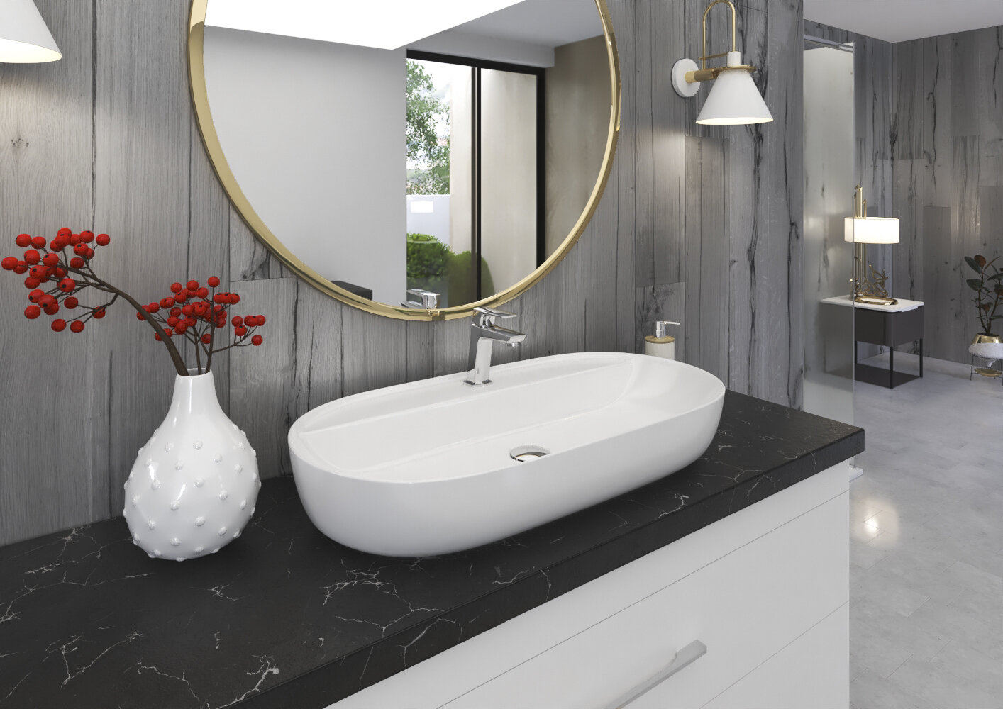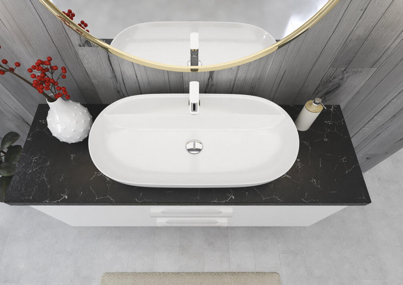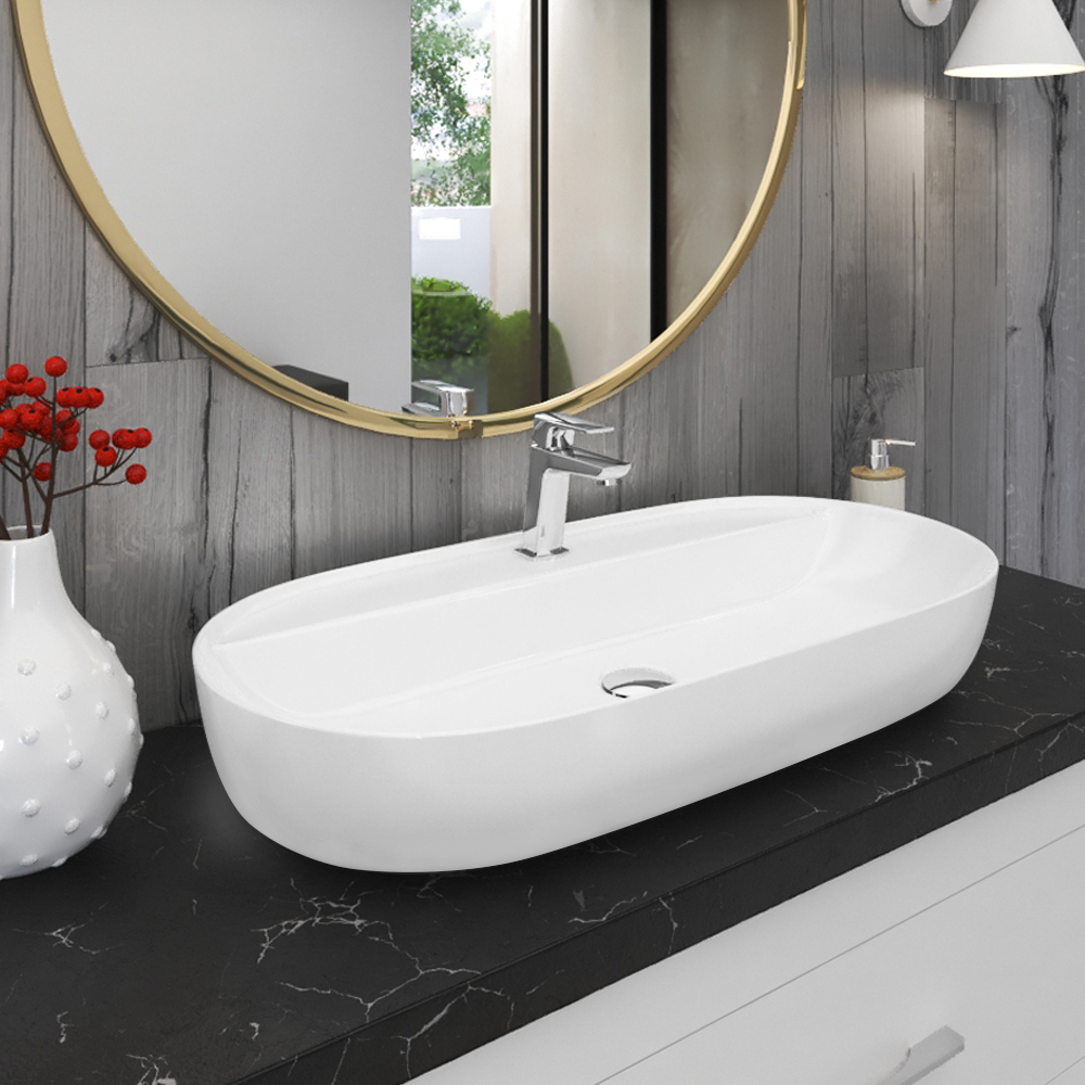 Oválne keramické umývadlo s otvorom pre batériu, bez prepadu.