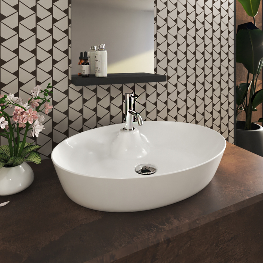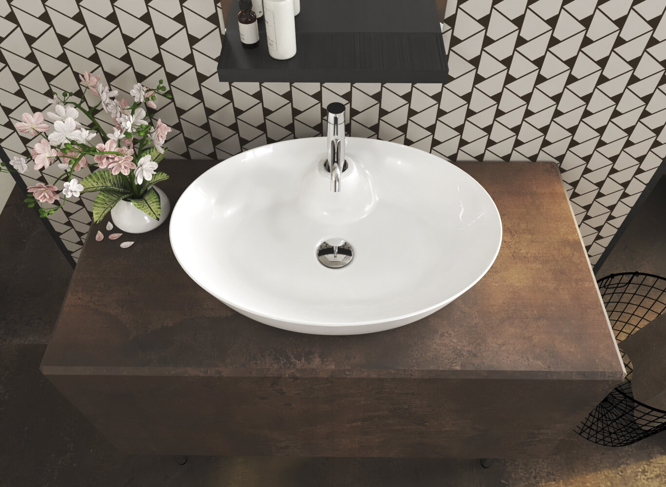 Oválne keramické umývadlo s otvorom pre batériu, bez prepadu.