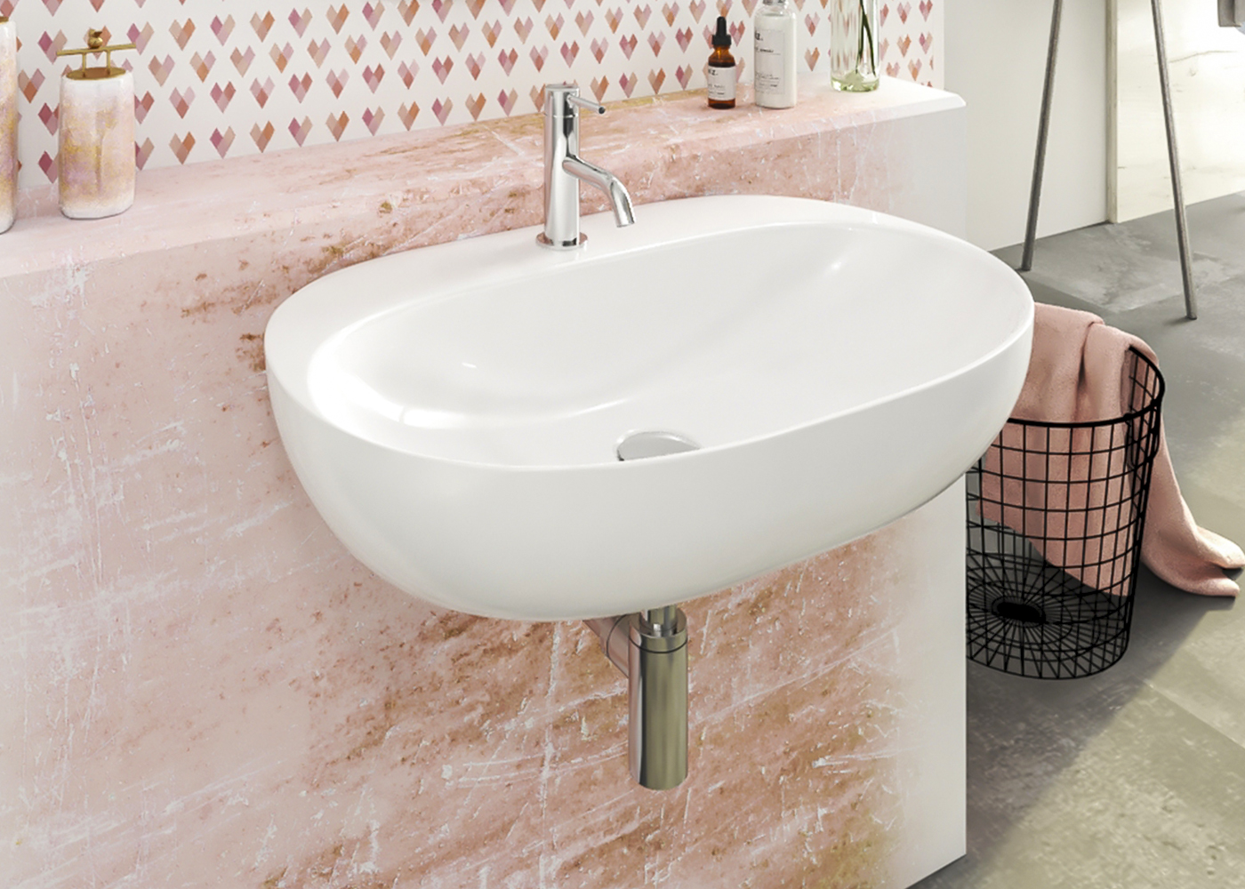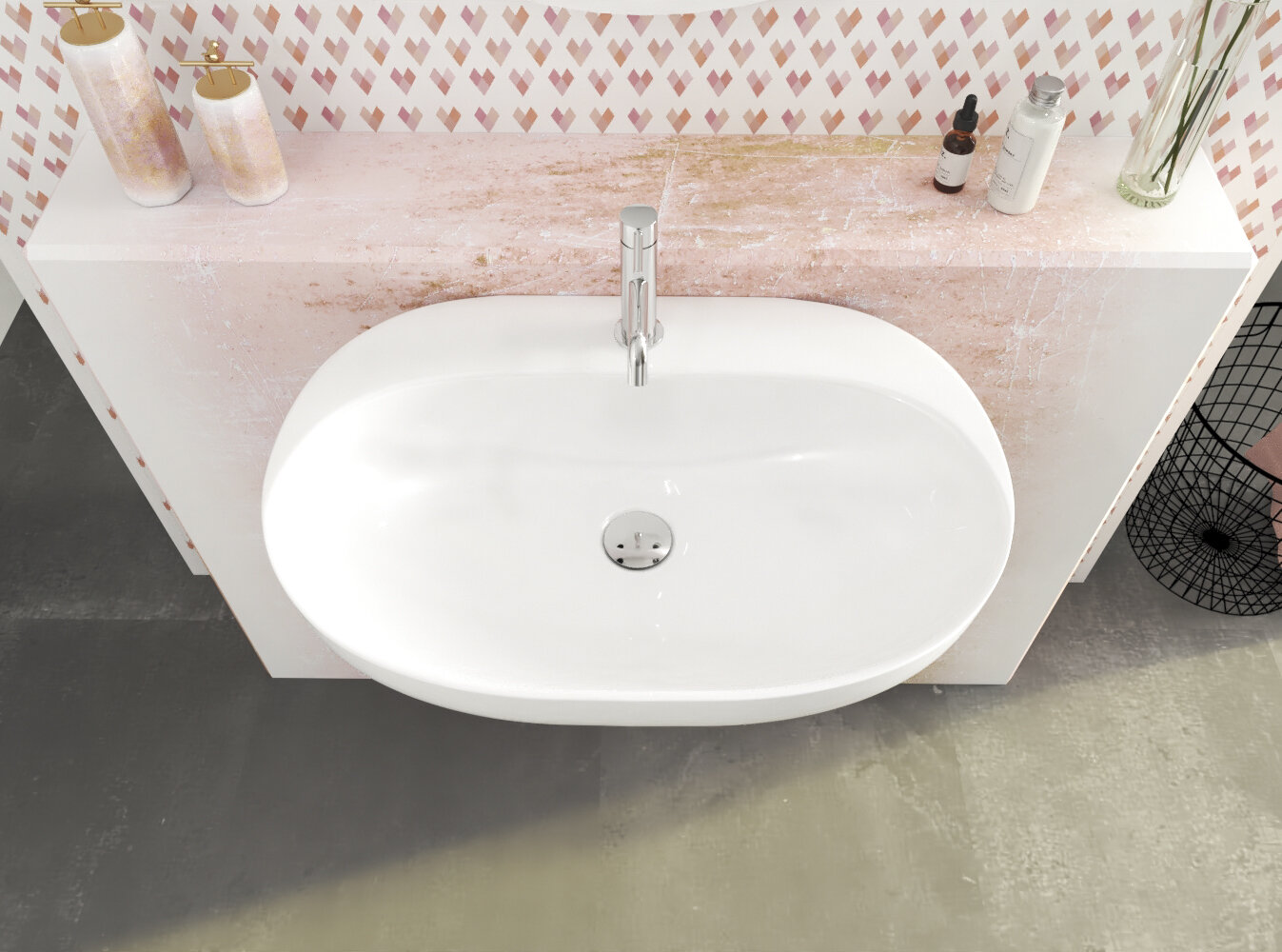 Oválne keramické umývadlo bez otvoru pre batériu, bez prepadu.