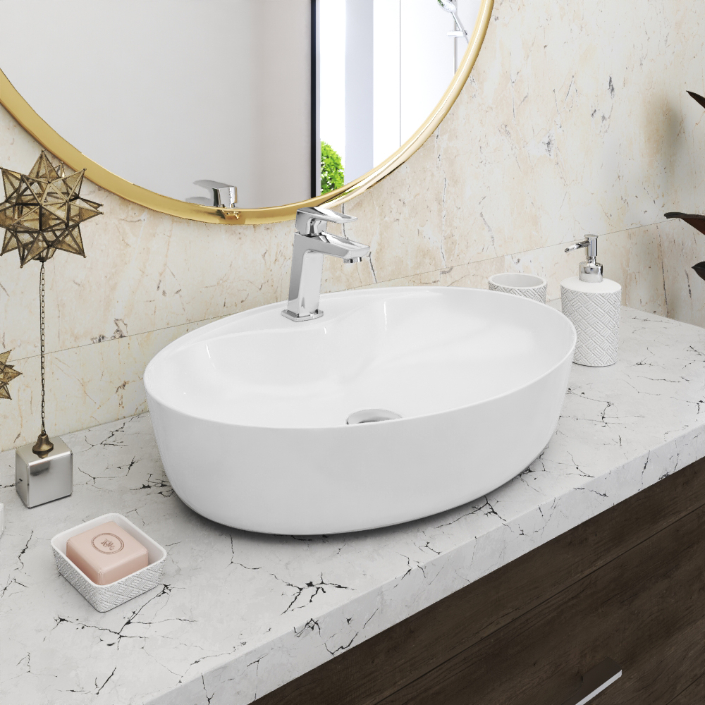 Oválne keramické umývadlo s otvorom pre batériu, bez prepadu.