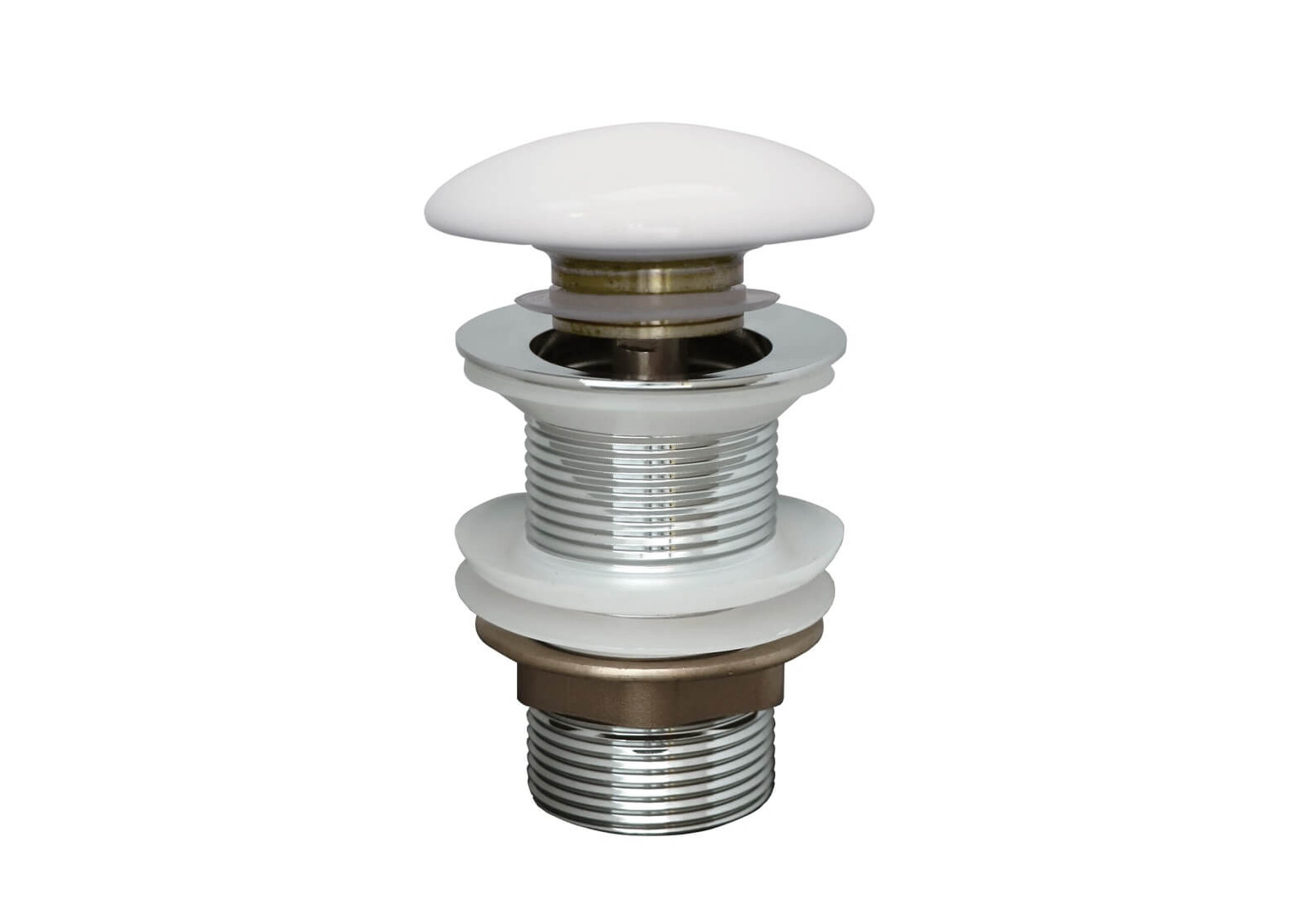 Chrómová výpust s veľkou bielou zátkou bez prepadu