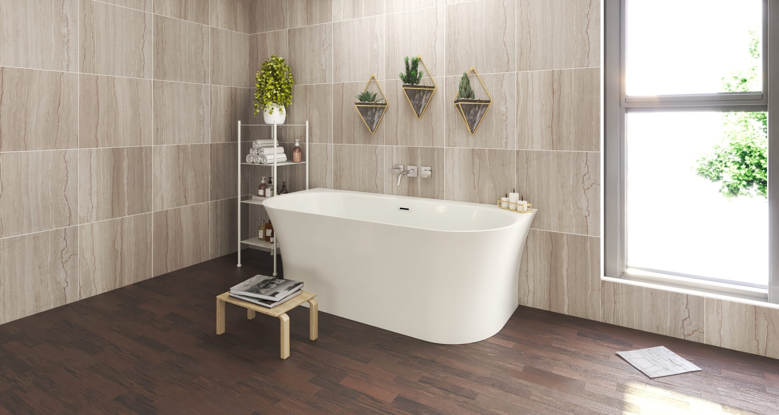 Vane z akrylátu sú ľahké, ale pevné, plne prefarbené v celej hrúbke. Povrch je lesklý, stálofarebný, neporézny, má vysokú povrchovú pevnosť, chemickú odolnosť a je príjemný na dotyk. Pýšia sa bohatým vnútorným priestorom a dodajú originálny jedinečný vzhľad každej kúpeľni.